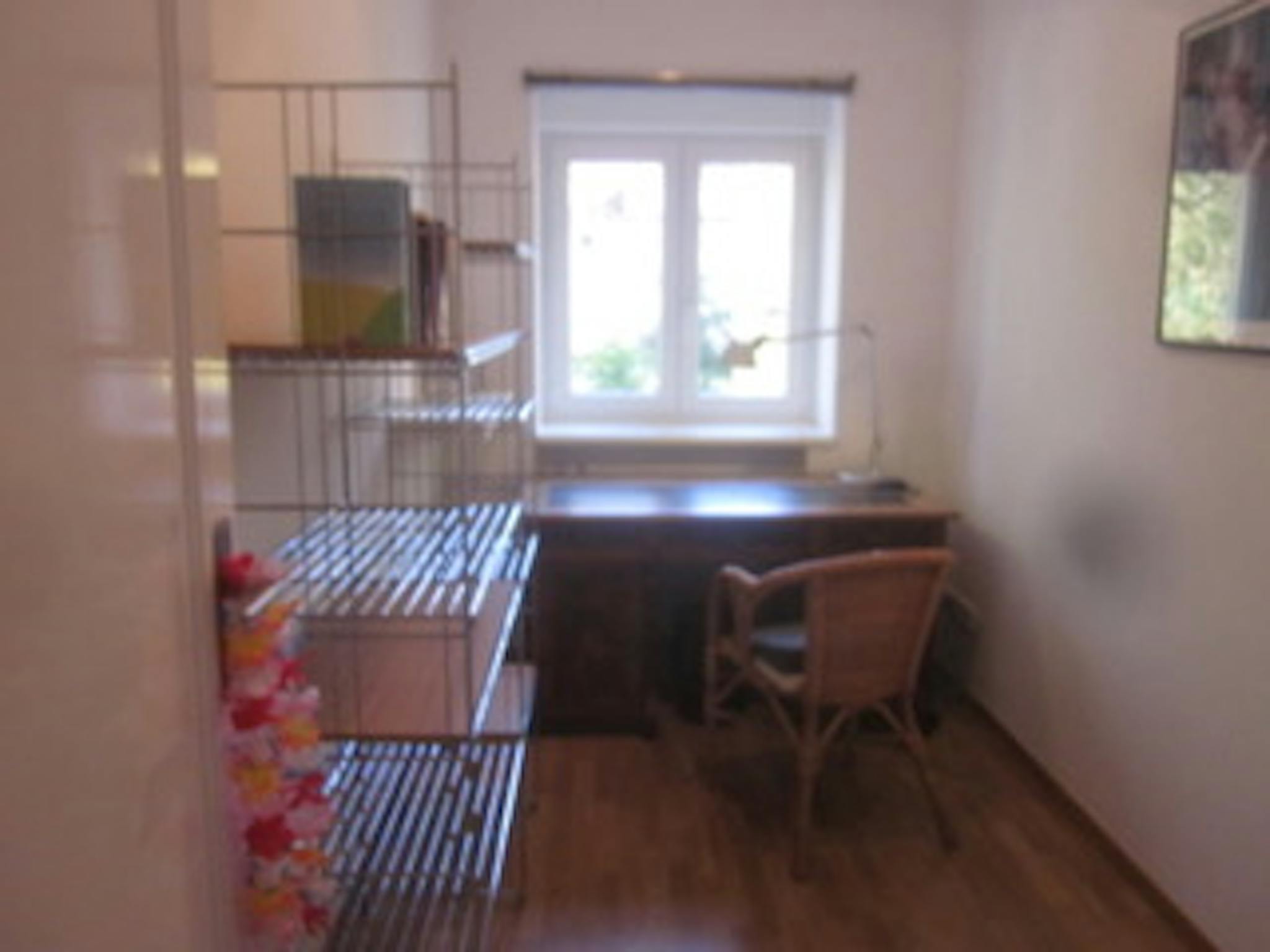 The flat itself consists of a bedroom with balcony, a study, a kitchen-living room and a bathroom with bathtub. In the garden there is a small park, which invites you to stay.