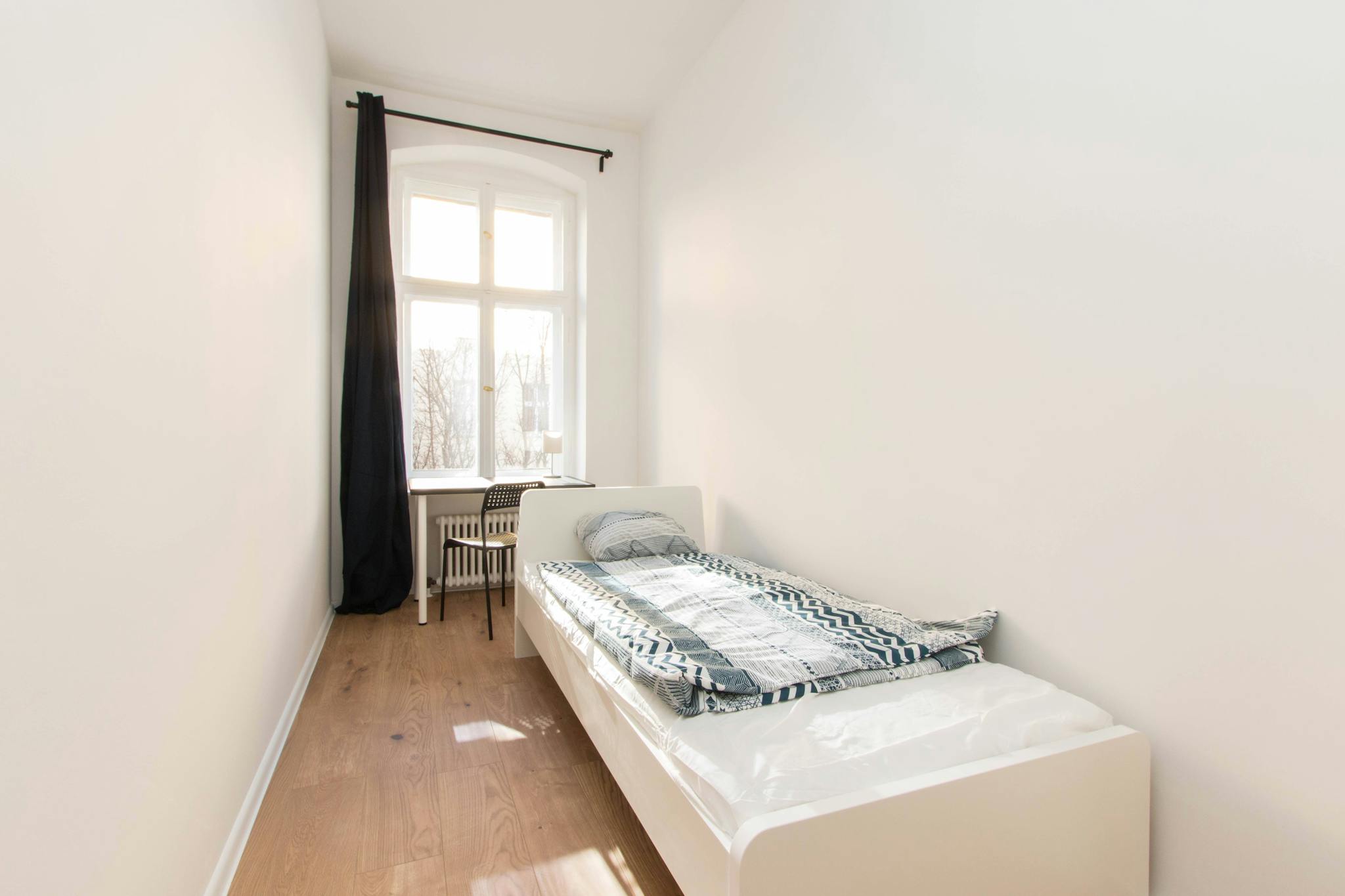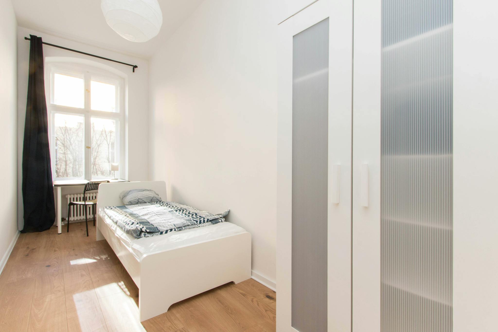 this is a fully furnished room in a shared flat. The room has a comfortable bed, a desk with chair and a wardrobe for your clothes. Also the common areas are fully equipped with washing machine, cooking equipment and all you need for your daily living.