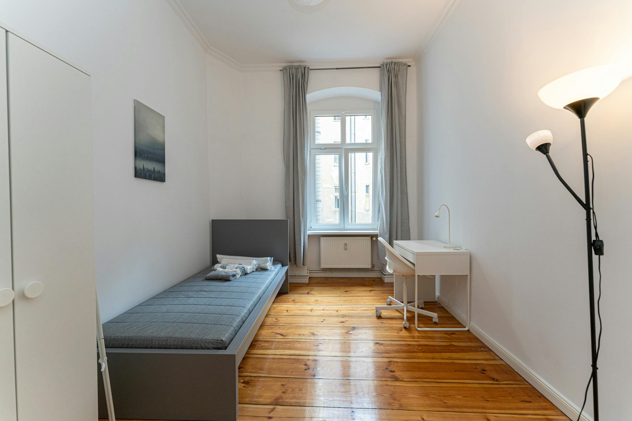 This beautifully modernized, fully furnished shared apartment 93 qm is located on the 1th floor and features high ceilings, wooden flooring, and a bright, welcoming atmosphere. It’s hard to find a more central and exciting location!