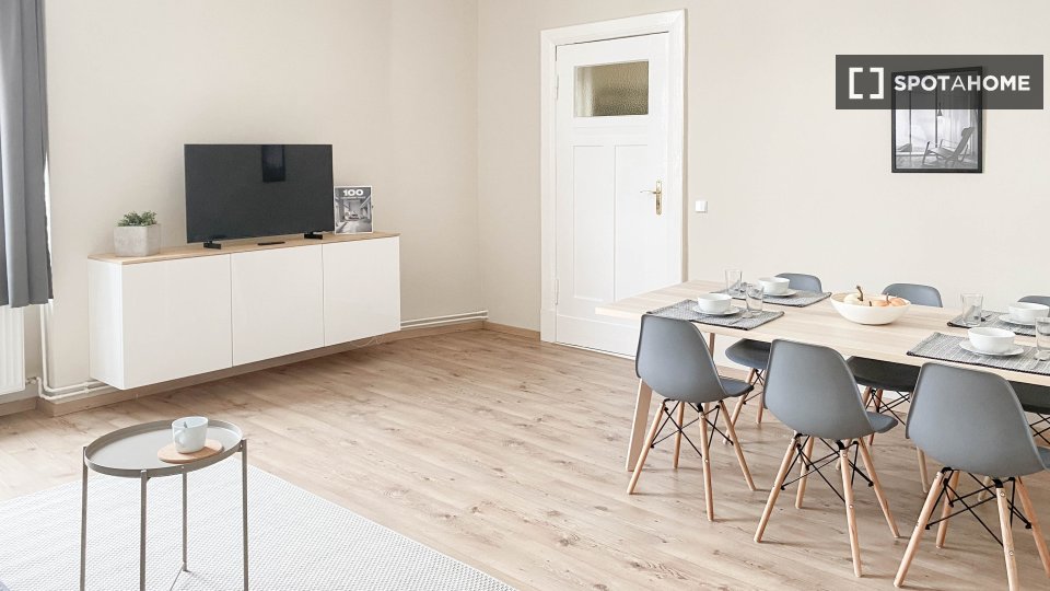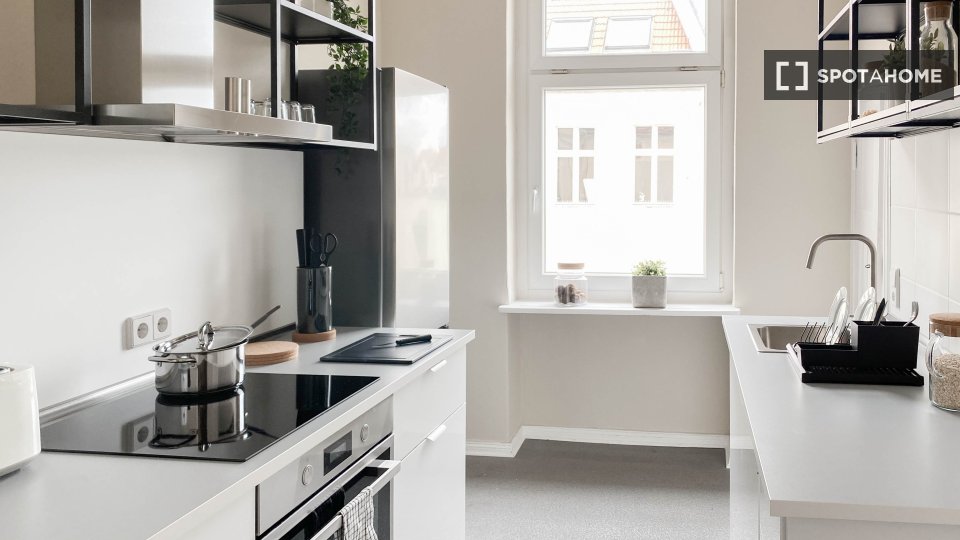 Pets allowedAllowedThis charming 1-bedroom apartment for rent in Berlin is thoughtfully outfitted for your comfort. The apartment comes fully furnished, featuring an equipped kitchen with a dishwasher and oven, a private washing machine, and a cozy balcony for relaxing outdoors. Additional amenities include a television and provided bed linens. Pets are welcome, however, smoking is not allowed inside this exterior property. With all utility bills covered, including electricity, water, gas, and WiFi, you'll find this home to be both convenient and stress-free. For renter demographics, the apartment is open to everyone, including professionals, families, students, and even Erasmus participants. What's more, this property has been thoroughly checked by Spotahome.
