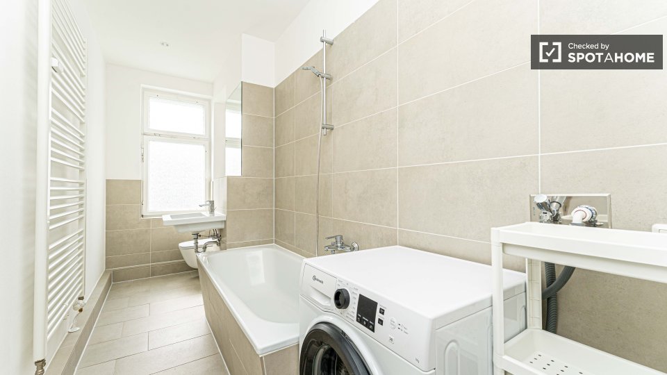 Pets not allowedNot allowedLooking for a modern and comfortable place to stay? This fully furnished 2-bedroom apartment in Berlin is available for rent. It comes equipped with all essential amenities, including a washing machine and an oven. Notably, all utility bills, including electricity, water, gas, and WiFi, are included. Verified by Spotahome, this listing ensures peace of mind and reliability for your residency. Couples, professionals, and students are welcome, and the property is available for domiciliation.