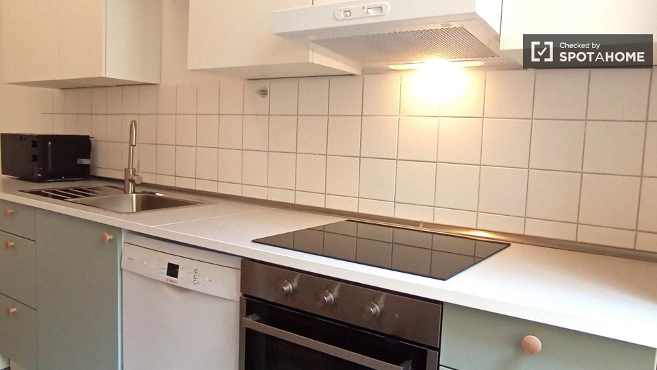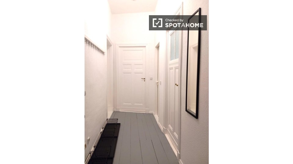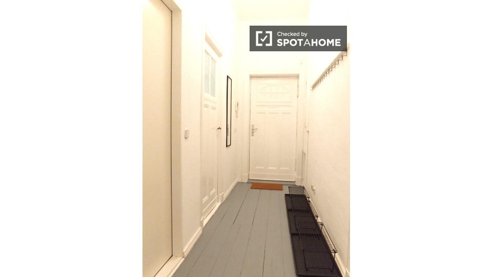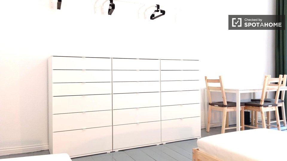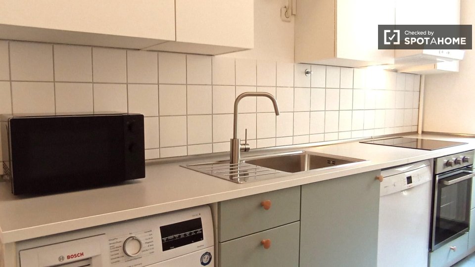 Pets allowedAllowedThis stylish studio apartment in Berlin offers a cozy living space equipped with modern furniture and amenities. The space is fully furnished and features an equipped kitchen with a dishwasher and an oven. A private washing machine is available for your convenience. Bills for water, electricity, and gas are included in the rental price, providing a hassle-free living experience. This listing has been personally checked by Spotahome, ensuring reliability and comfort for inhabitants, including professionals, students, families, couples, Erasmus students, and pet owners.
