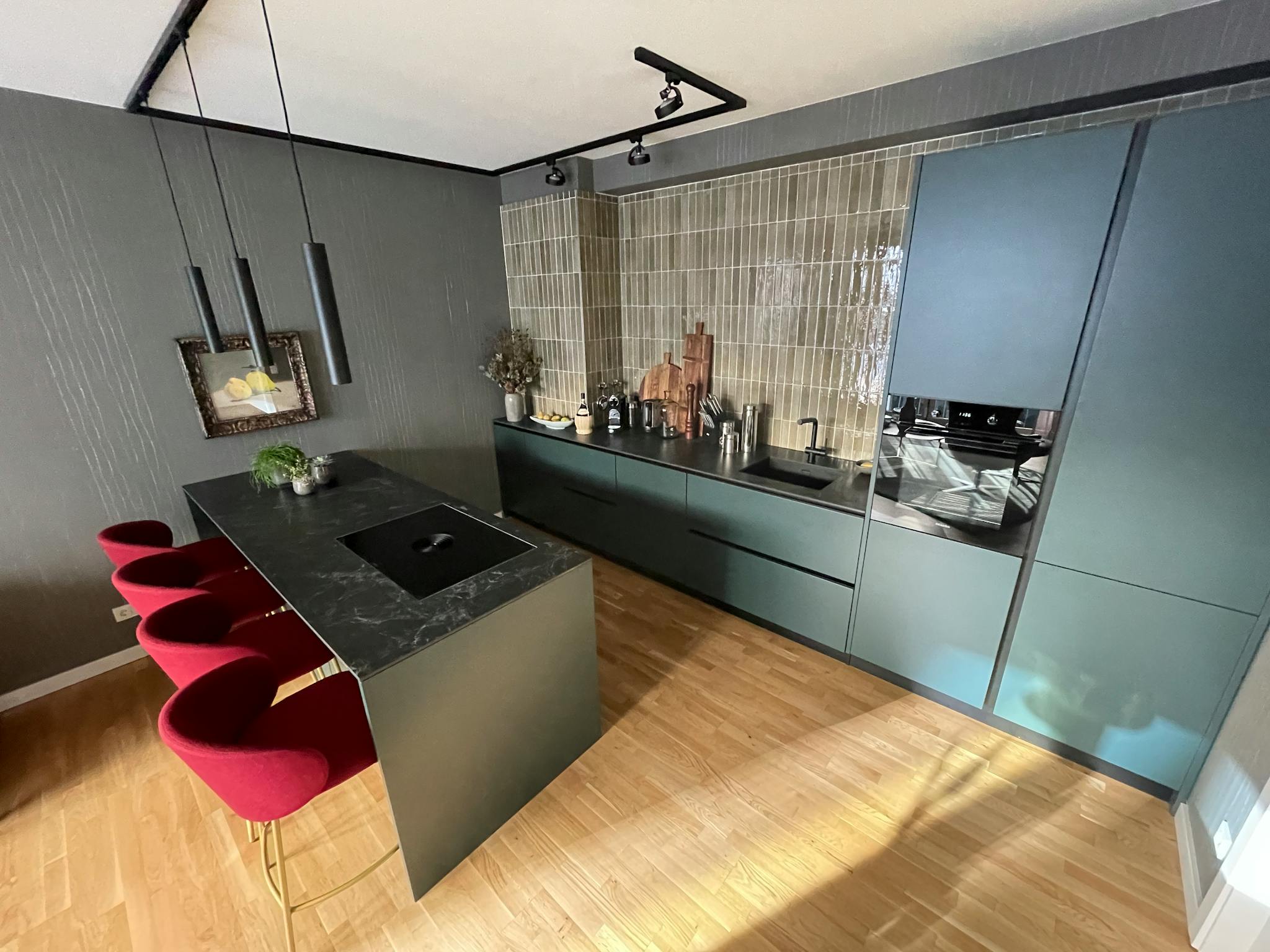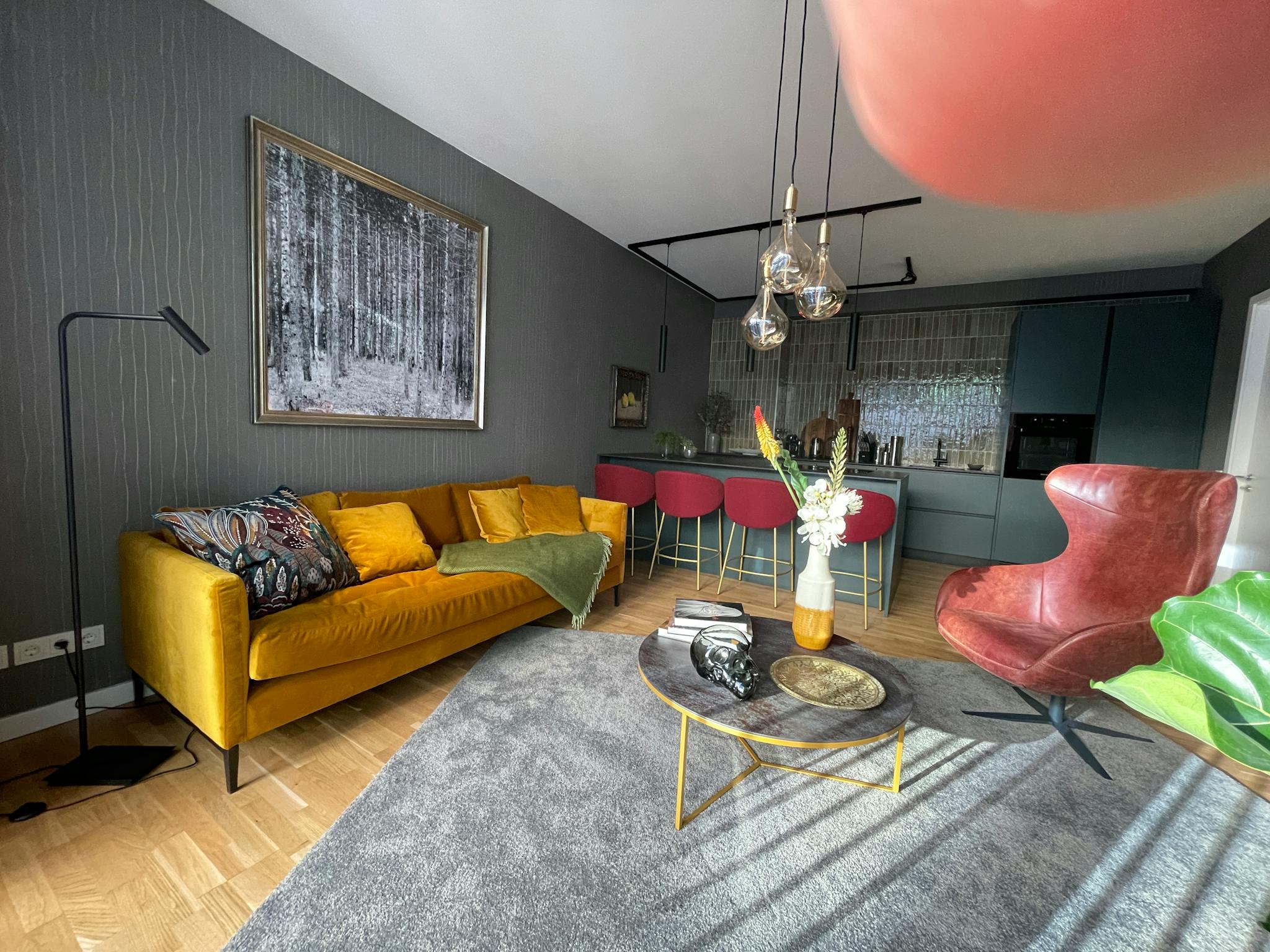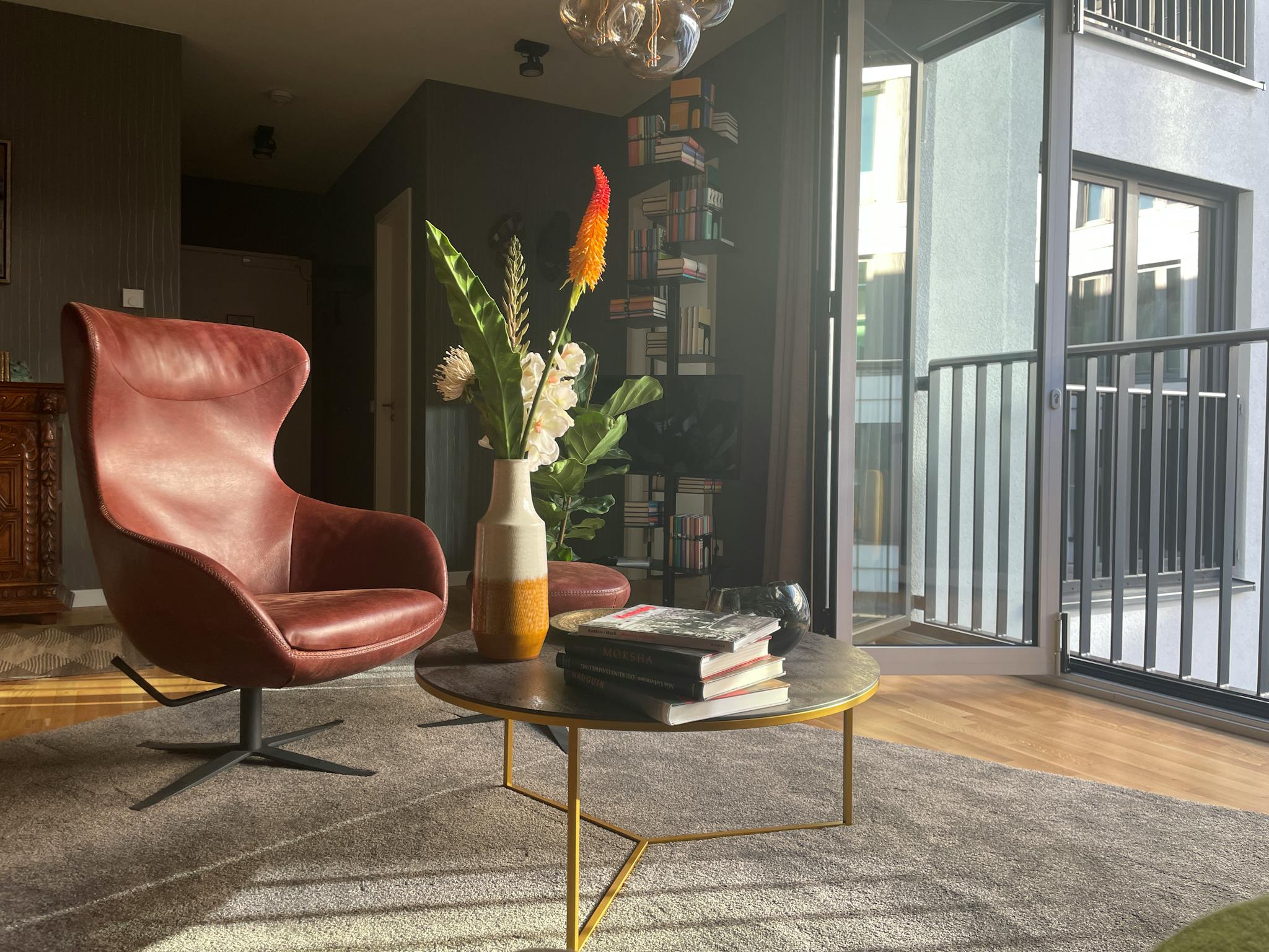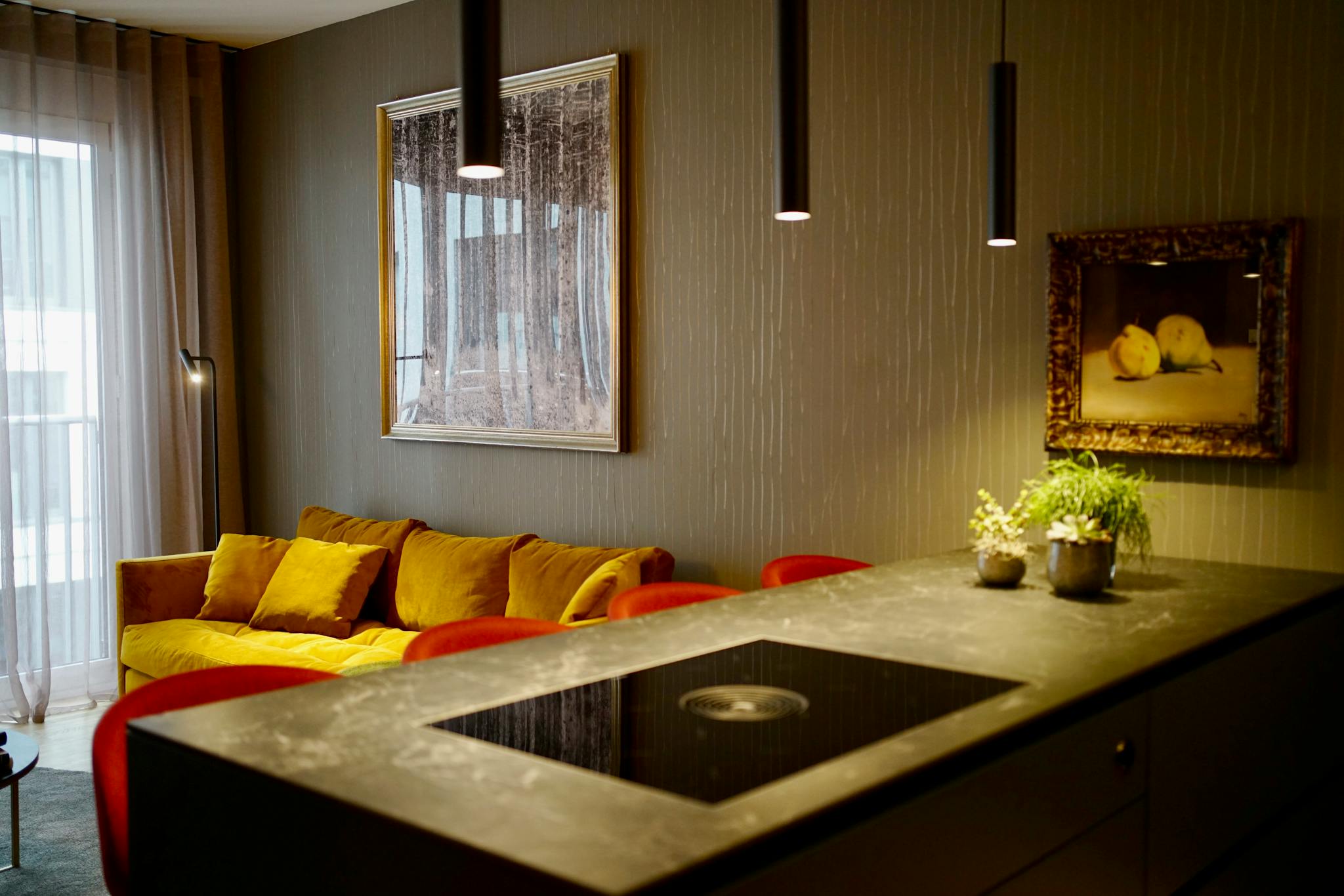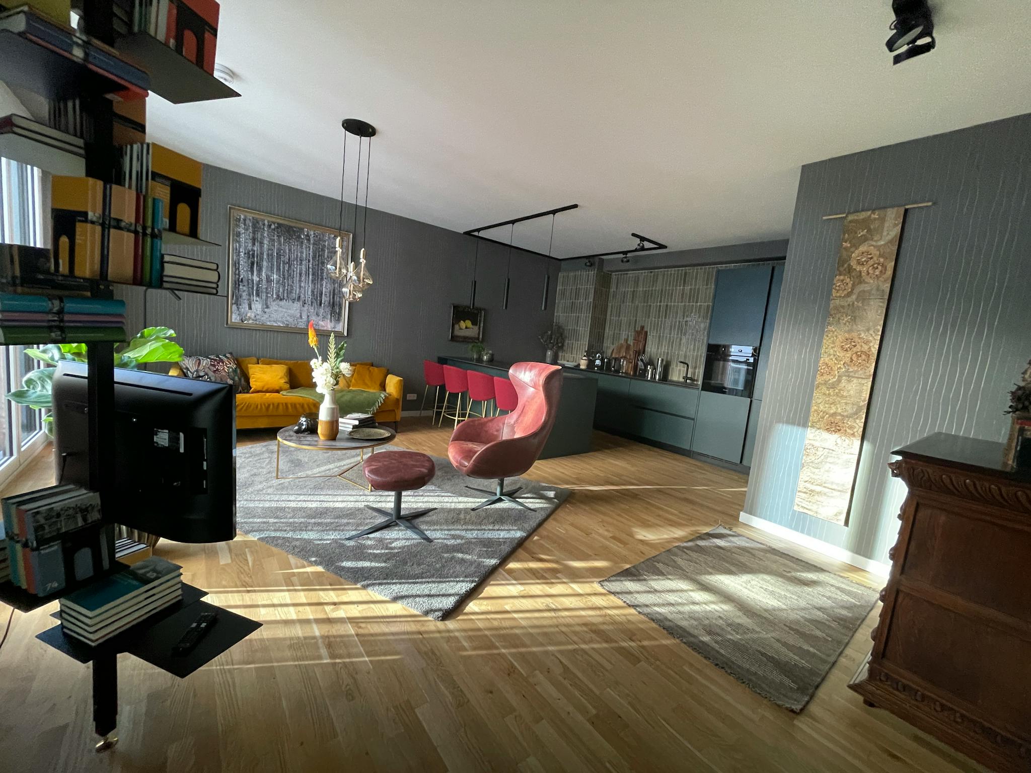 The apartment offers a spacious 45-square-meter open-plan kitchen and living area, designed with exceptional attention to detail and premium materials. Every piece of furniture is carefully selected and exclusive—absolutely nothing from IKEA! The kitchen is equipped with top-of-the-line appliances, including Miele refrigeration units and a BORA cooktop system, representing the best in European white goods. This luxurious setup ensures both style and functionality for cooking, entertaining, or simply enjoying your time at home.