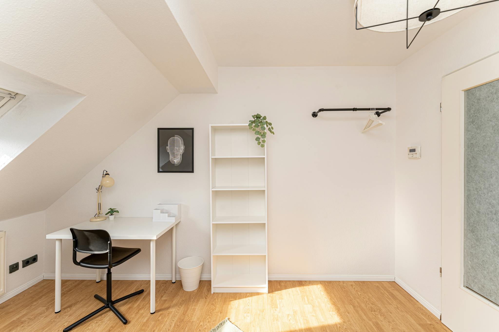 this is a fully furnished room in a shared flat. The room has a comfortable bed, a desk with chair and a wardrobe for your clothes. Also the common areas are fully equipped with washing machine, cooking equipment and all you need for your daily living.