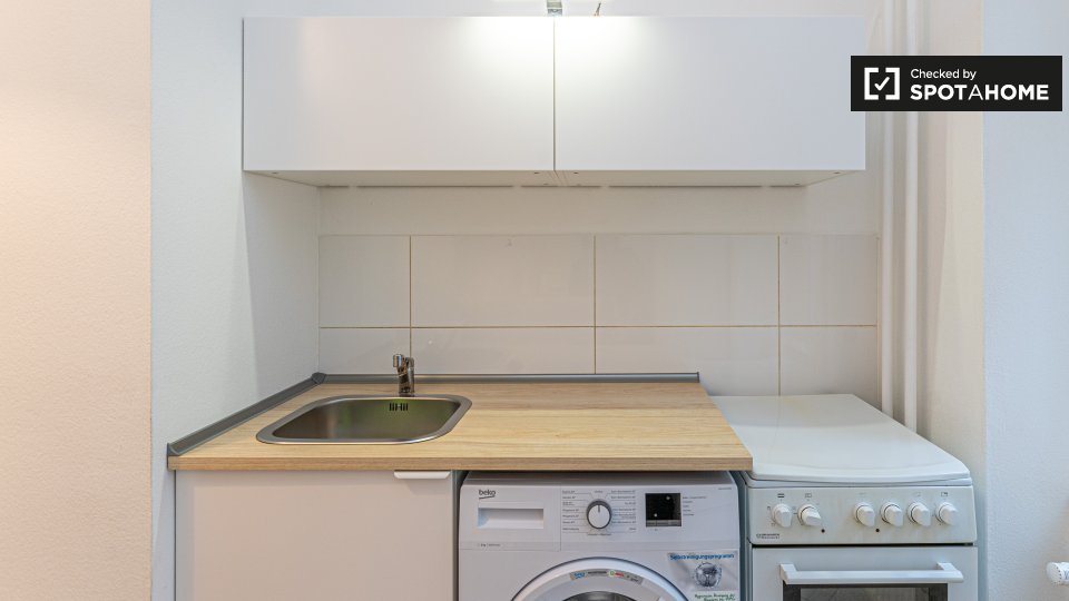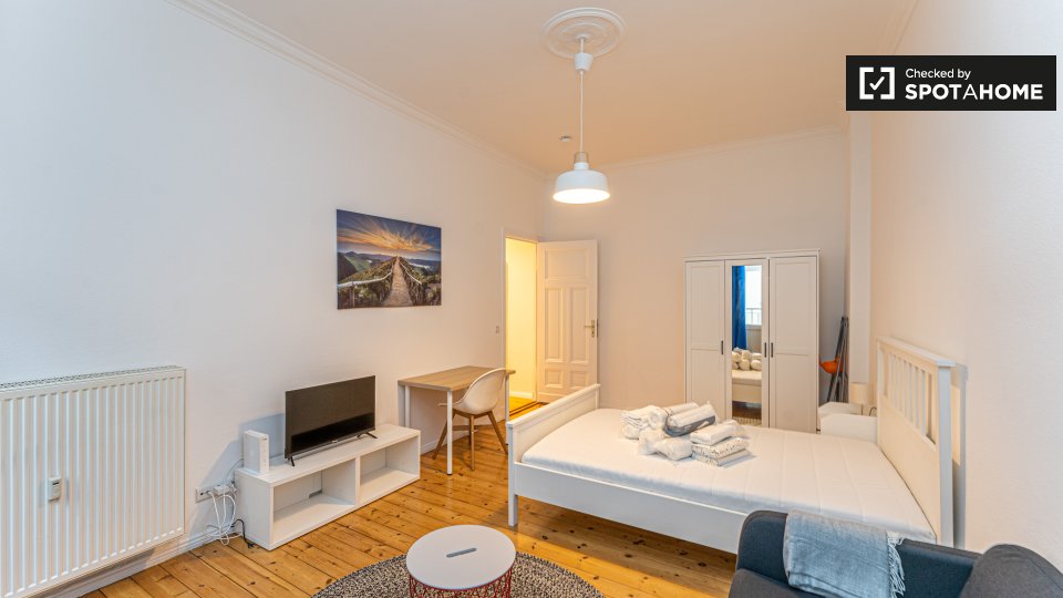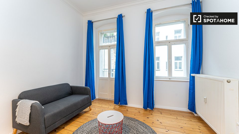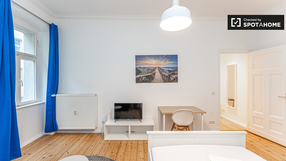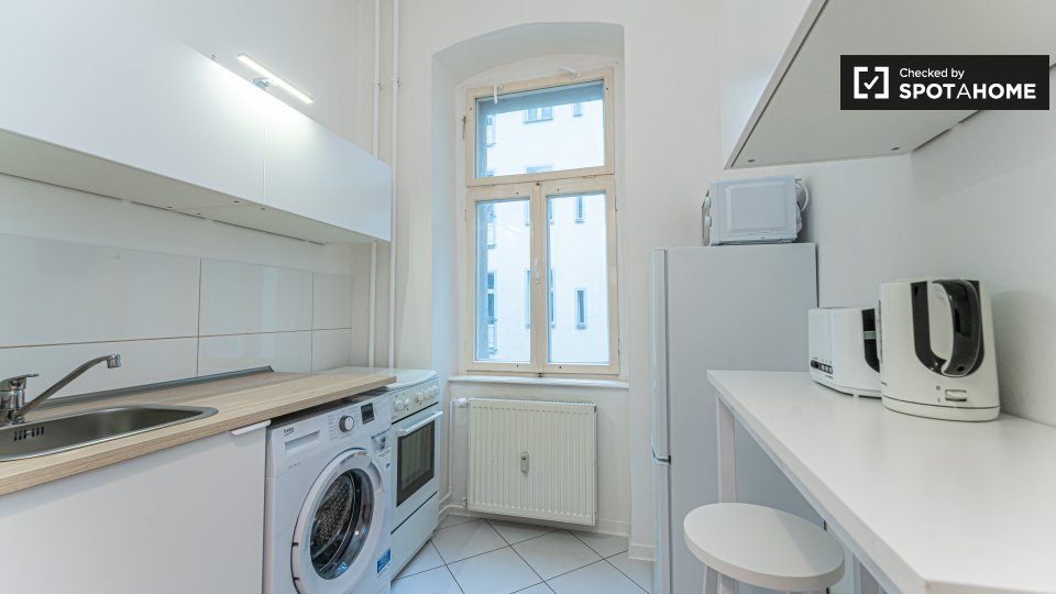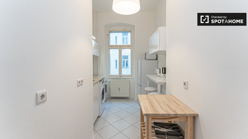 Pets not allowedNot allowedDiscover this inviting 1-bedroom apartment located in Berlin. The apartment comes fully furnished, featuring private washing machine access, an oven for your cooking needs, and a television. The kitchen is equipped for meal preparation, and all utility costs are included in the rent, allowing for a hassle-free living experience. Spotahome has personally checked this property, ensuring its quality and suitability for potential tenants.