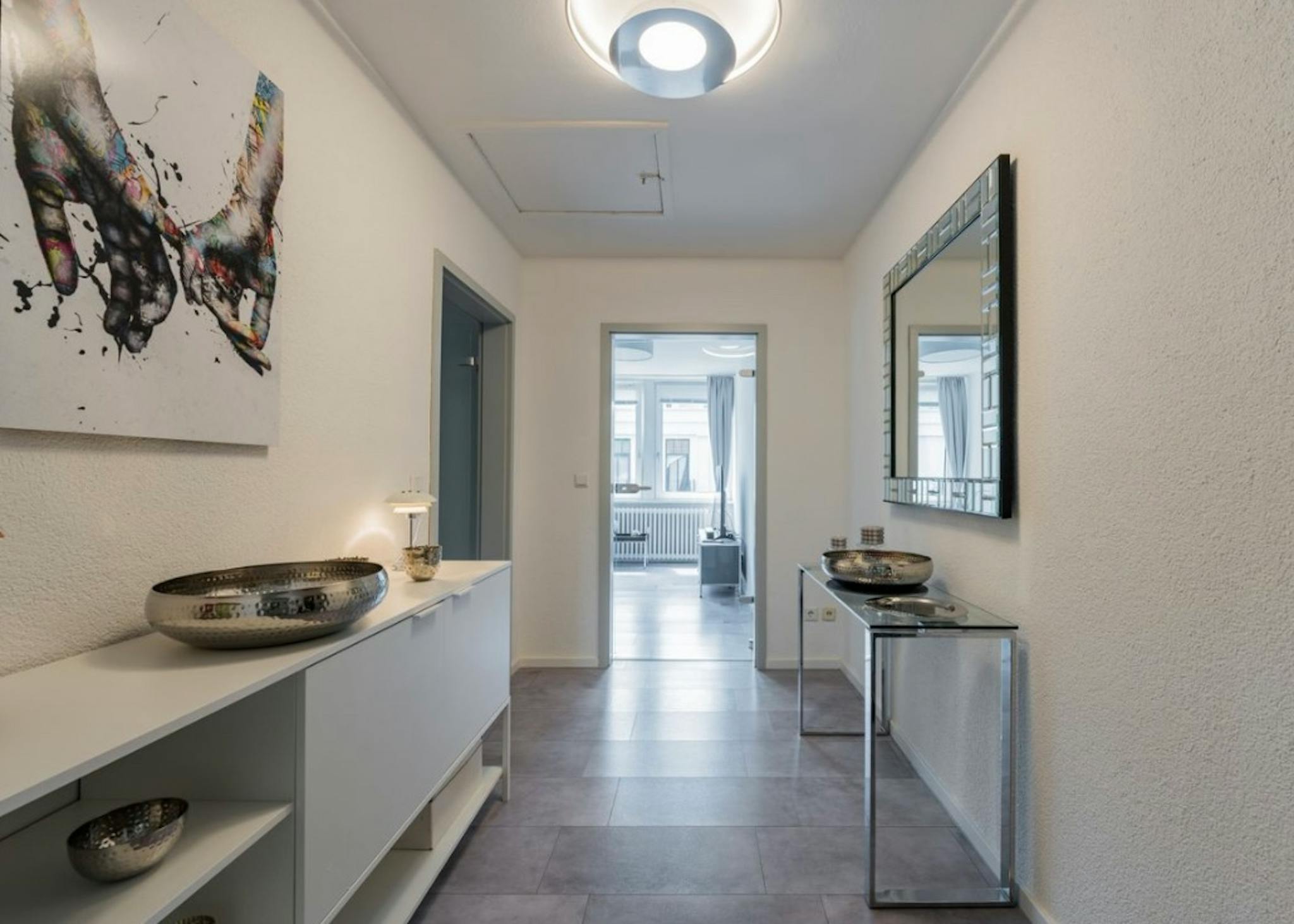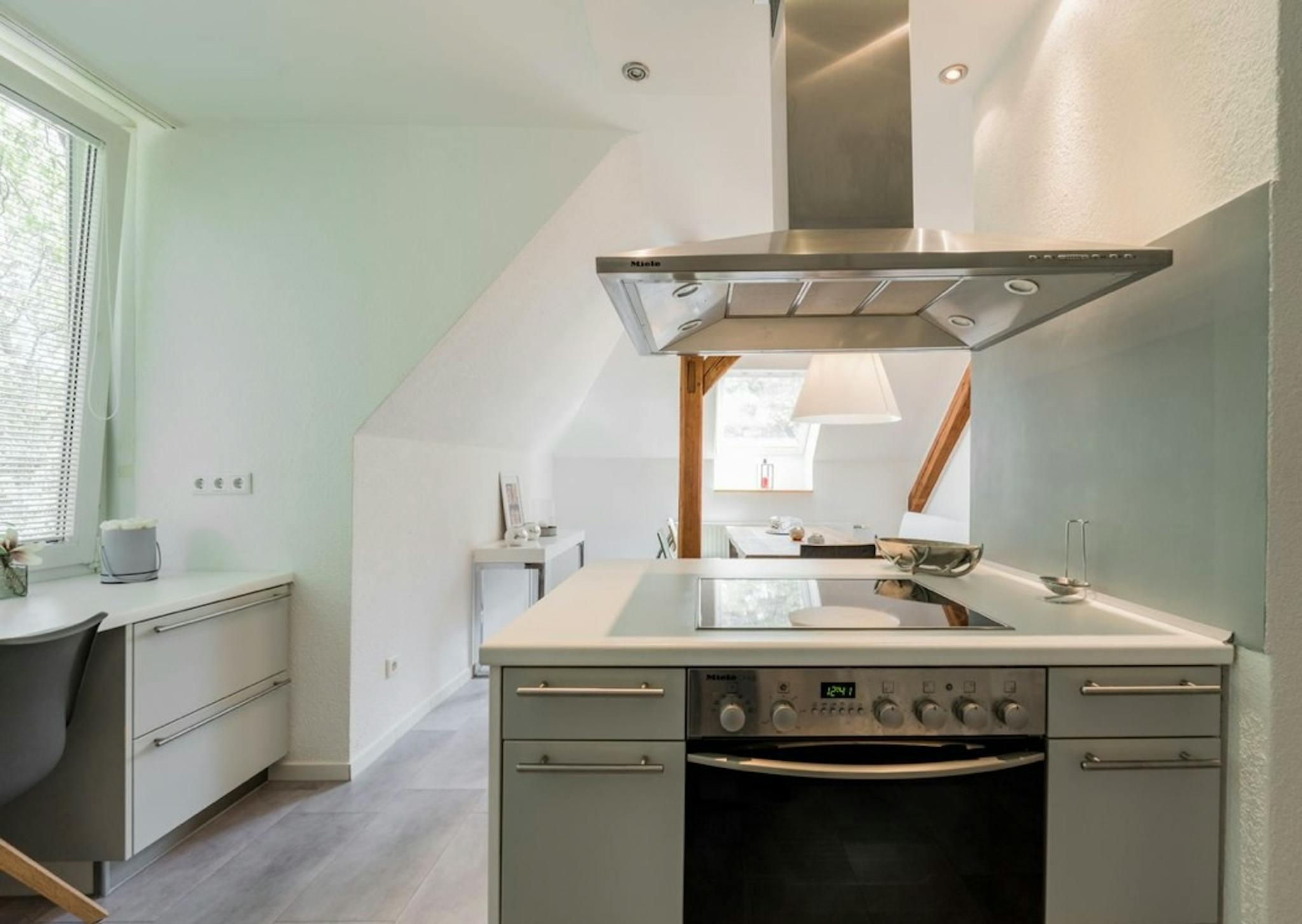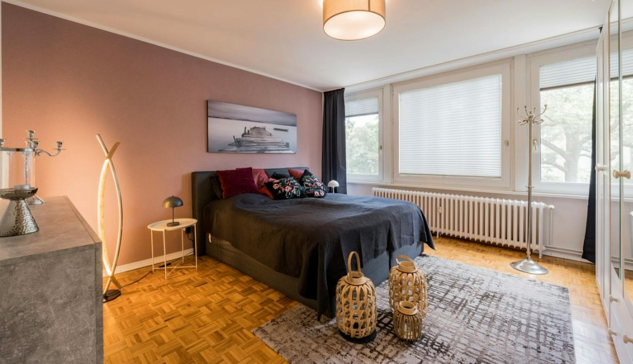Non-SmokingNot allowedUpon entering the flat, you will be immediately impressed by the tasteful designer furnishings and modern design. The open floor plan gives the living area an airy and inviting ambience. The spacious, light-filled living room is the perfect place to relax after a long day and entertain guests. The bedroom is another highlight of this dream apartment. With a comfortable double bed and stylish furniture, this room is a true haven. Here you can retreat and enjoy a restful night's sleep. The designer kitchen will delight even the most discerning amateur chefs. It has been thought through down to the smallest detail and is equipped with high-quality appliances. Whether you want to prepare a simple dinner or cook a festive meal for friends and family, you have everything you need here and use the big dining area. An absolute highlight of the flat are the seating areas surrounded by greenery, which offer breathtaking views of the absolutely peaceful nature in the middle of one of Berlin's best residential areas. Here you can enjoy your morning cup of coffee or tea, spend relaxing evenings outdoors or simply enjoy the fresh air and tranquillity of the surroundings. The flat is ideal for anyone who appreciates beautiful things and exclusivity. The location of the flat is also unbeatable. All the amenities you need for daily life, such as shops, restaurants, Skool, Kindergarden and public transport, are in the immediate vicinity. The surrounding area is perfect for walks in nature and offers a green oasis in the middle of the city.