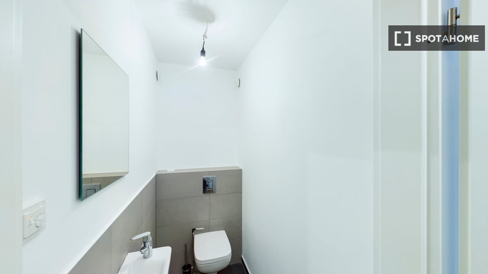 Fitted kitchen, Double Bed, Dining Table, Chairs, Carpet, Coffee Table, Wardrobe, Cutlery, Pans & kitchen accessories, Washing machine, Refrigerator, Hanging Dryer, Dishwasher, Vacuum Cleaner, Double bed (140x200), Shower, Wardrobe, Mirror