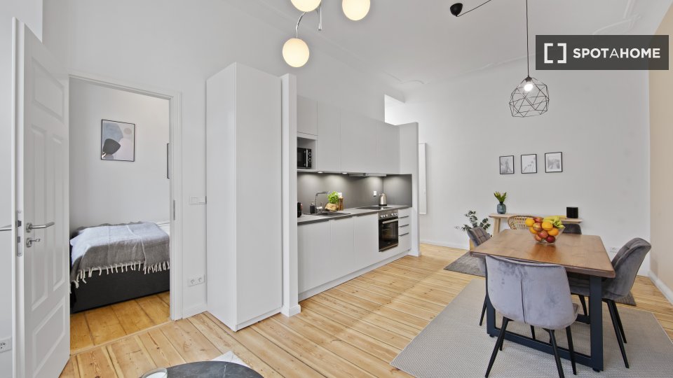 Pets not allowedNot allowedThis furnished 1-bedroom apartment in Berlin offers comfort and convenience. The apartment features a fully equipped kitchen, and all utility bills are included, providing a hassle-free living experience. Though the property has not been personally checked by Spotahome, rest assured that landlords are thoroughly vetted, ensuring quality standards for tenants.