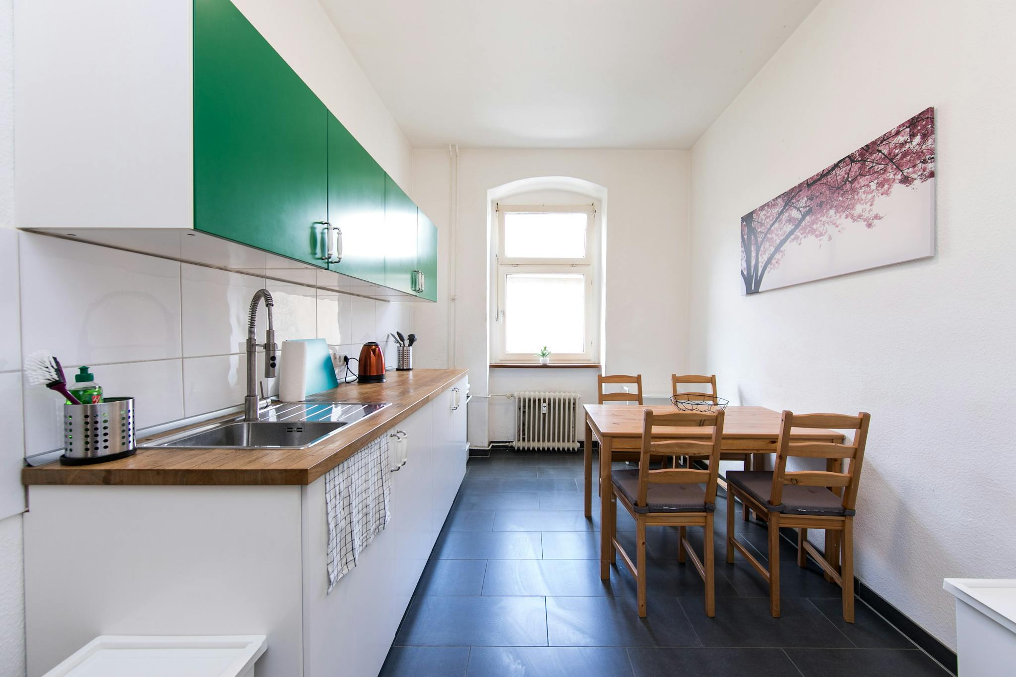 The monthly rent price is all inclusive (rent + heating + water + Internet + GEZ/german TV license fee).