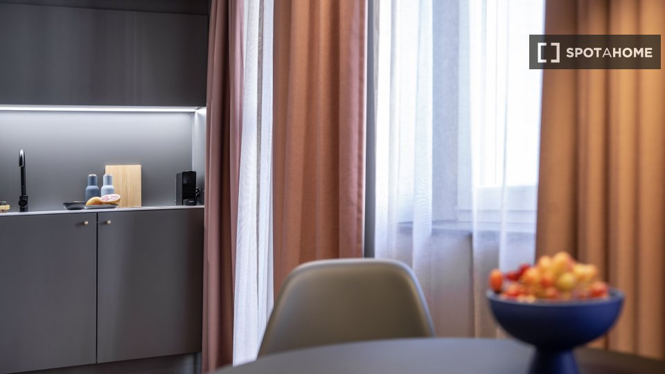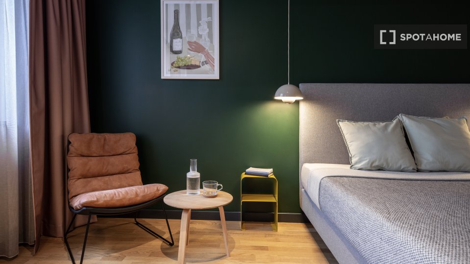 Pets not allowedNot allowedDiscover this stylish and completely furnished studio in Berlin. The studio is equipped with an equipped kitchen including appliances like a dishwasher and oven. Residents benefit from included utilities (electricity, water, gas, internet, heating), and bed linen is provided and included in the rent. The studio is suitable for professionals, students, and Erasmus tenants, while couples are welcome. However, pets and smoking are not allowed. Overnight guest rules are flexible.