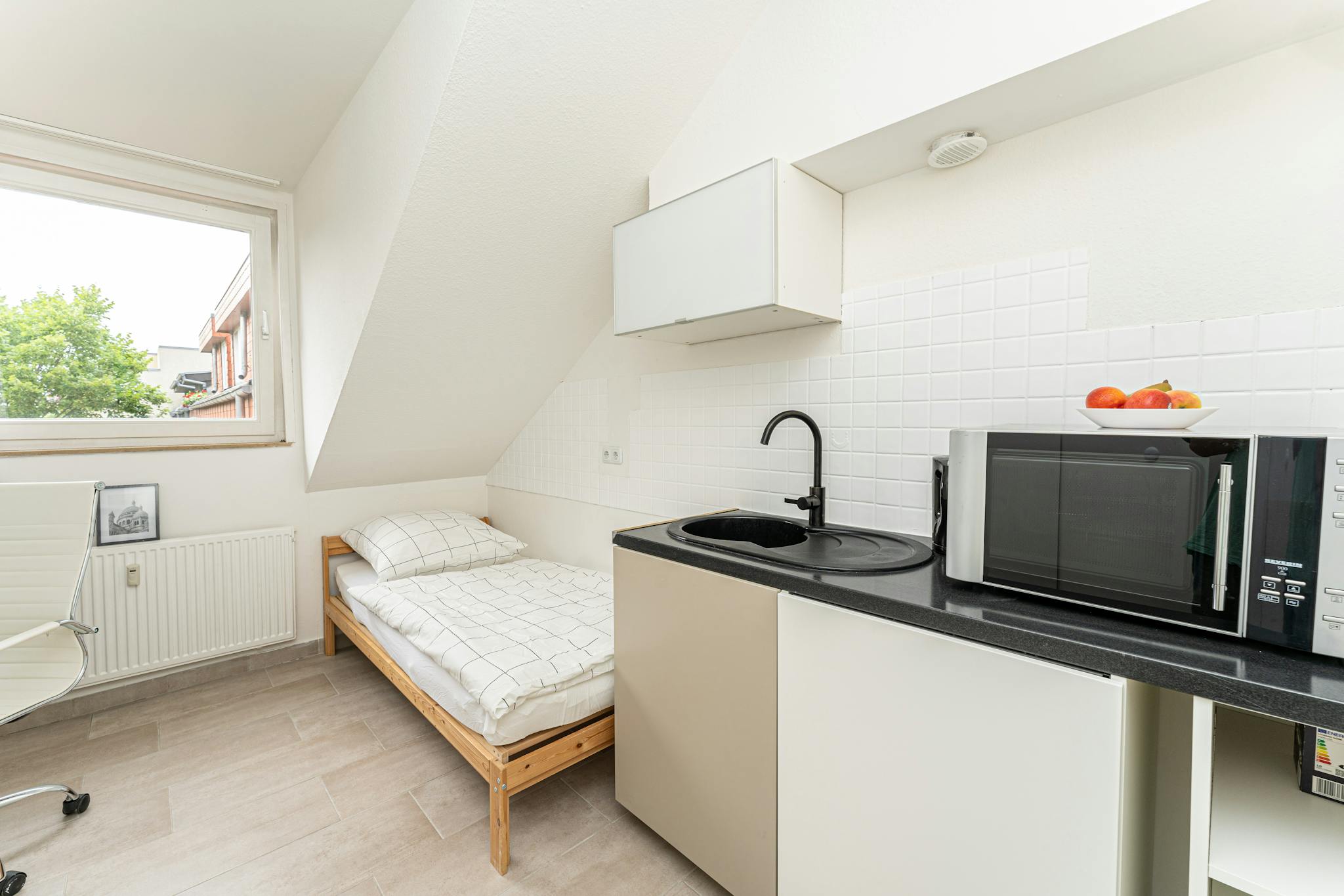 Non-SmokingNot allowedThis amazing private room has its own kitchen (!) and big table with fancy chair. Of course it has its bed, wardrobe and everything you need. If not let us know!