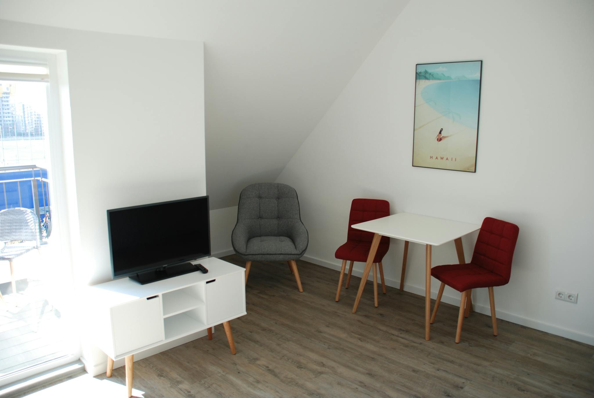 Non-SmokingNot allowedThe 2-room-apartment on offer is an attic apartment in Friedrichshain that has been expanded and fully equipped this year. The living room area has a terrace access with south orientation and an attached open fully equipped kitchen (dishwasher, stove, oven and separate refrigerator). The bed-room contains a double bed. Both rooms are furnished, the living room has a TV.