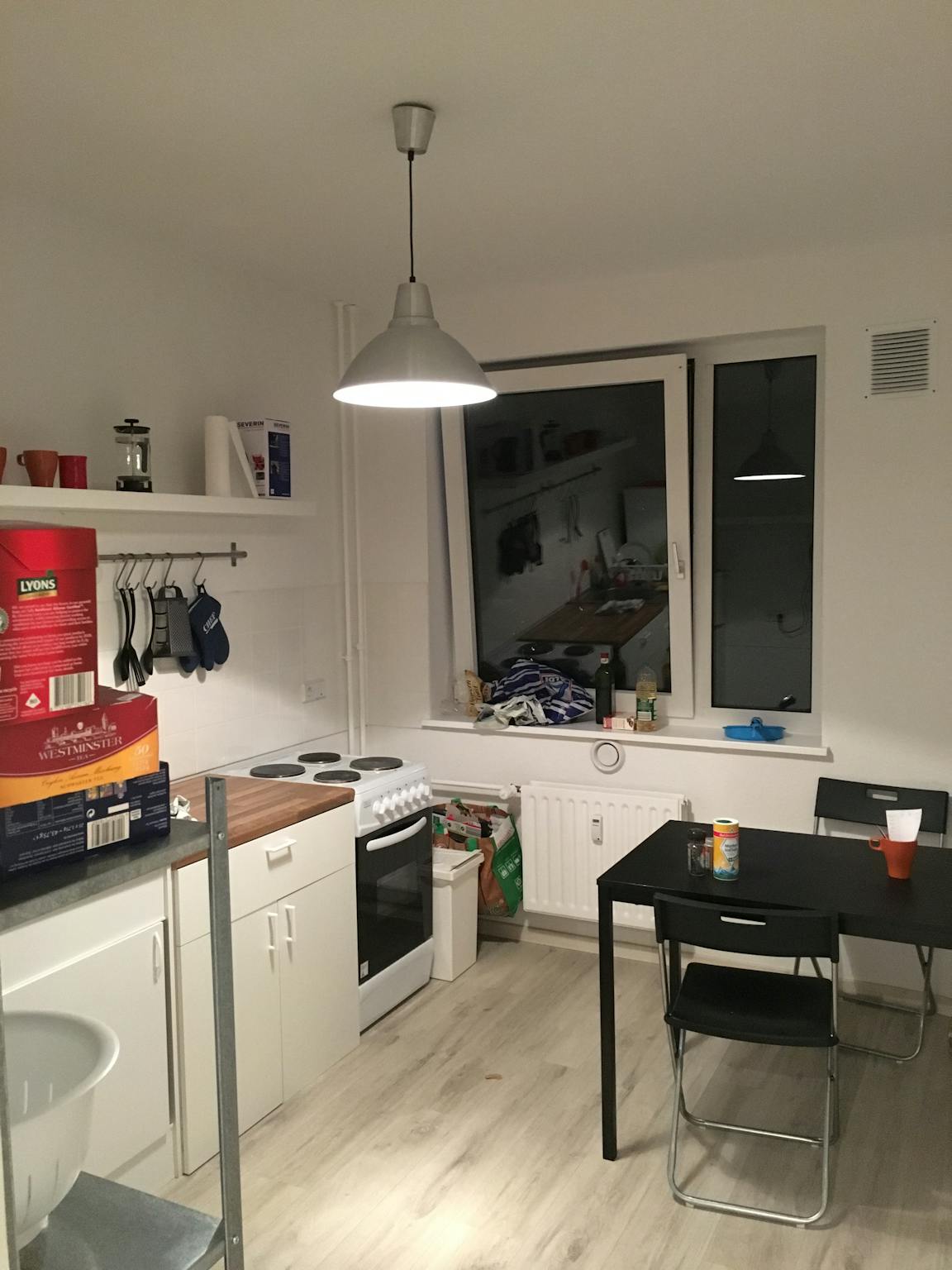 The monthly rent price is all inclusive (rent + heating + water + Internet + GEZ/german TV license fee).
