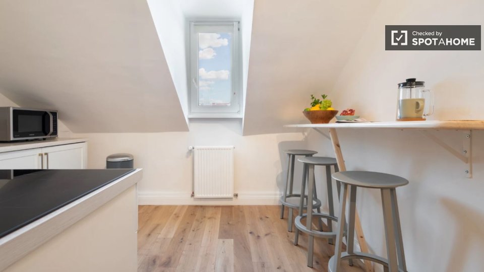Pets not allowedNot allowedThis 1-bedroom apartment in Berlin is fully furnished and equipped with modern amenities, including a TV and a private washing machine. The property comes with an equipped kitchen and includes all bills (electricity, water, gas, and WiFi). Couples are allowed and the property welcomes professionals and students. Spotahome has personally checked the property, ensuring its quality and trustworthiness.