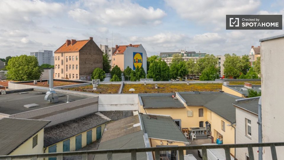 The apartment is located in Berlin, with several nearby points of interest. Restaurants such as Balkan Grill and Neue Herzbäckerei are within walking distance, as well as markets like Penny and Aldi. The renowned Springbrunnen tourist attraction is also nearby, making this location ideal for exploring Berlin.