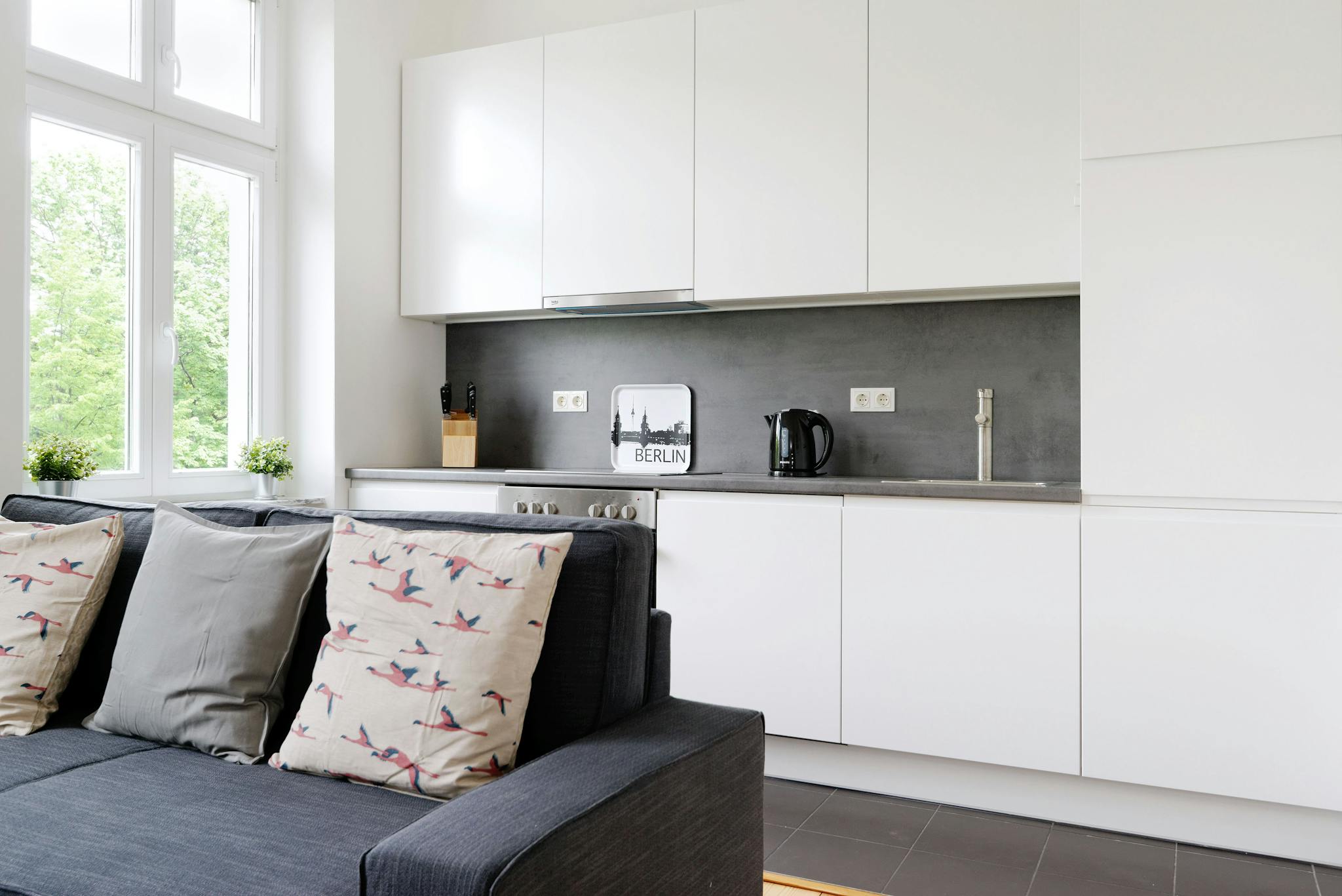 Non-SmokingNot allowedDieses wunderschöne 50m2 große Apartment lässt keine Wünsche offen. Das geräumige Schlafzimmer mit komfortablem Doppelbett liegt ruhig zum Hinterhof. Das Badezimmer ist mit einer großen Dusche ausgestattet und das weitläufige Wohnzimmer besticht durch eine offen liegende Designerküche.