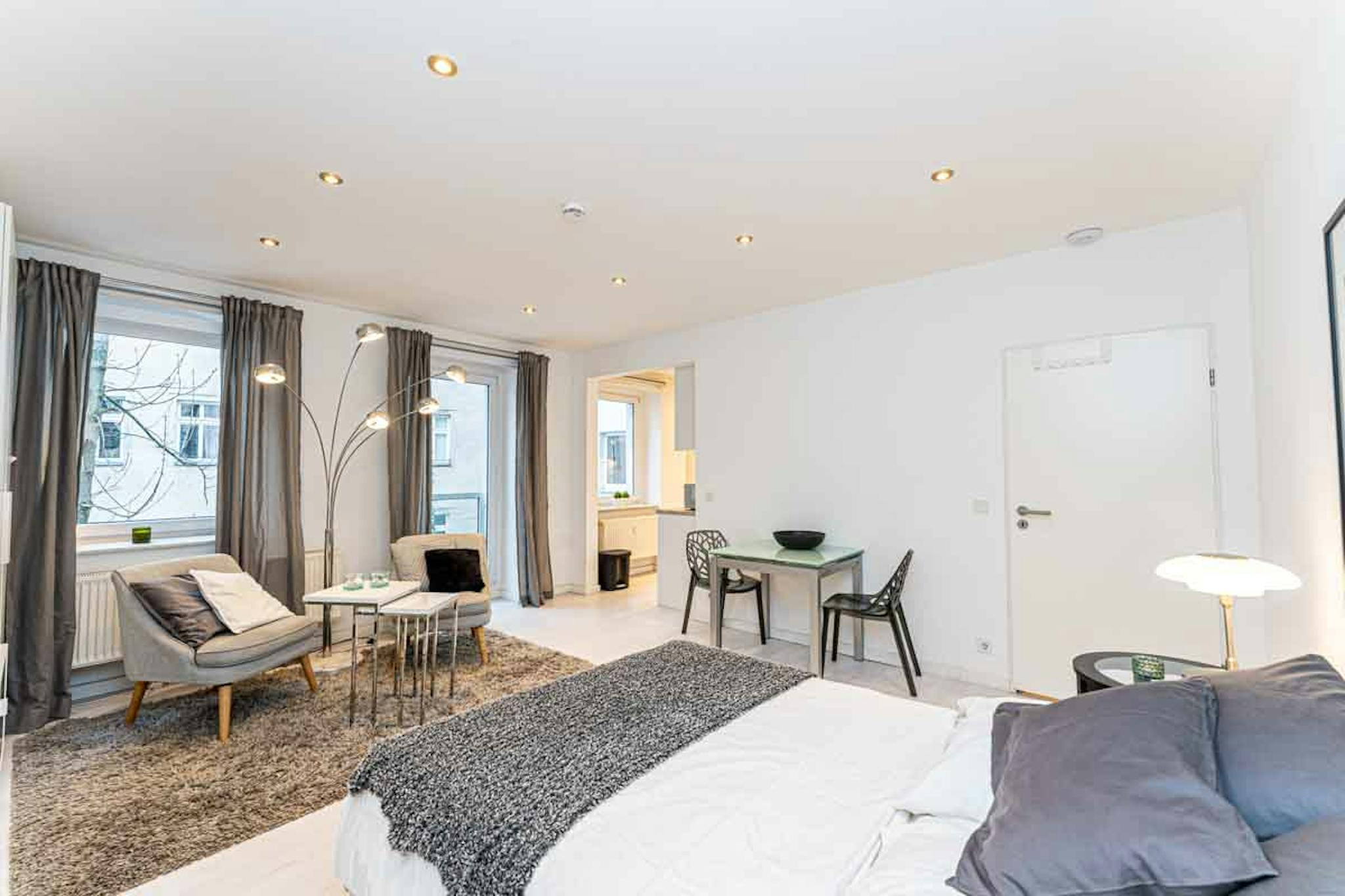 Im Preis sind die GEZ-Gebühren, WLAN, eine Reinigung einmal im Monat, Concierge Service/Hausmeister Service und die üblichen Nebenkosten enthalten.