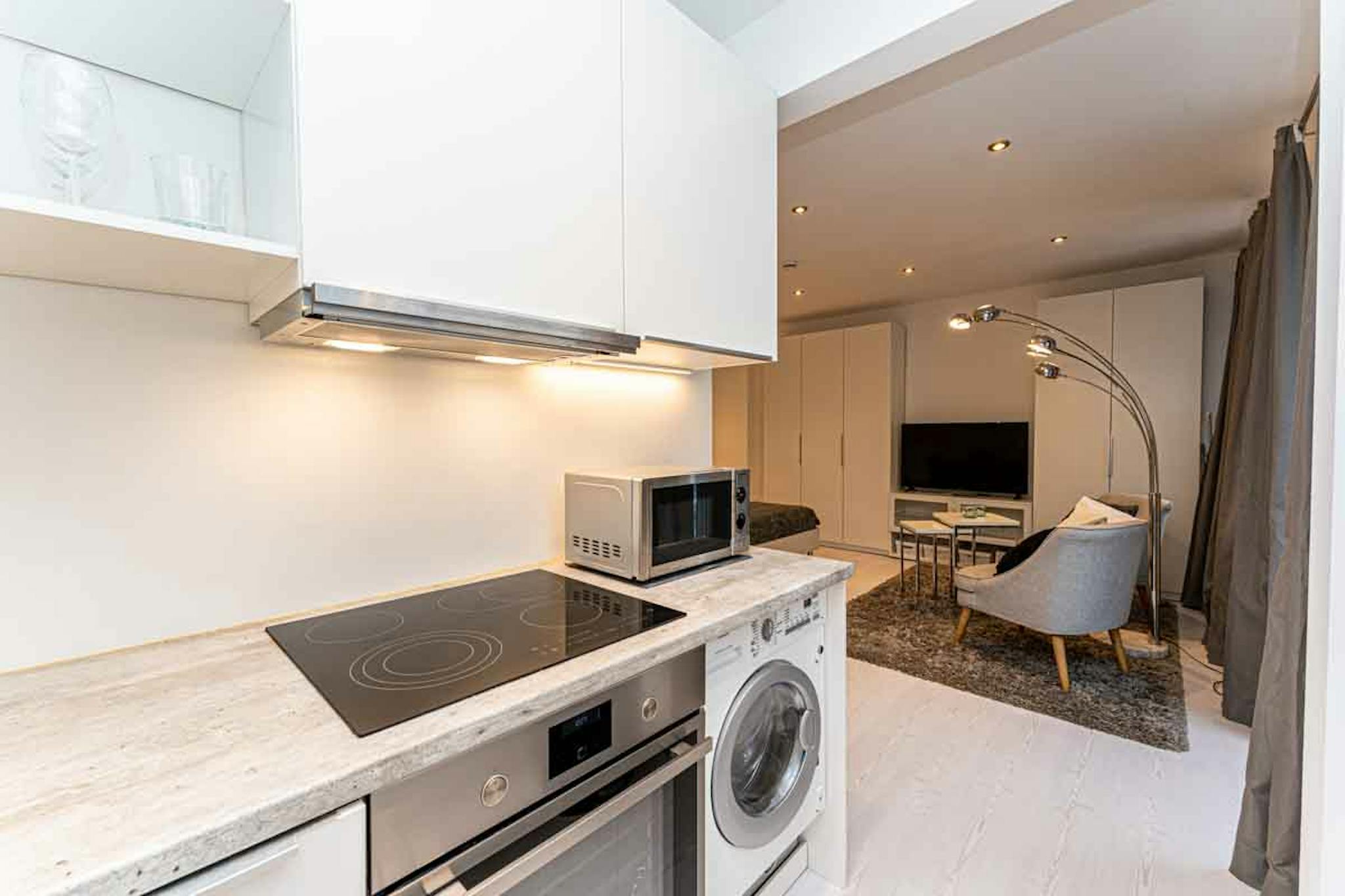 – Open kitchen with dishwasher, fridge, freezer, washing machine incl. dryer, dishes, cooking utensils, toaster, kettle, Nespresso machine