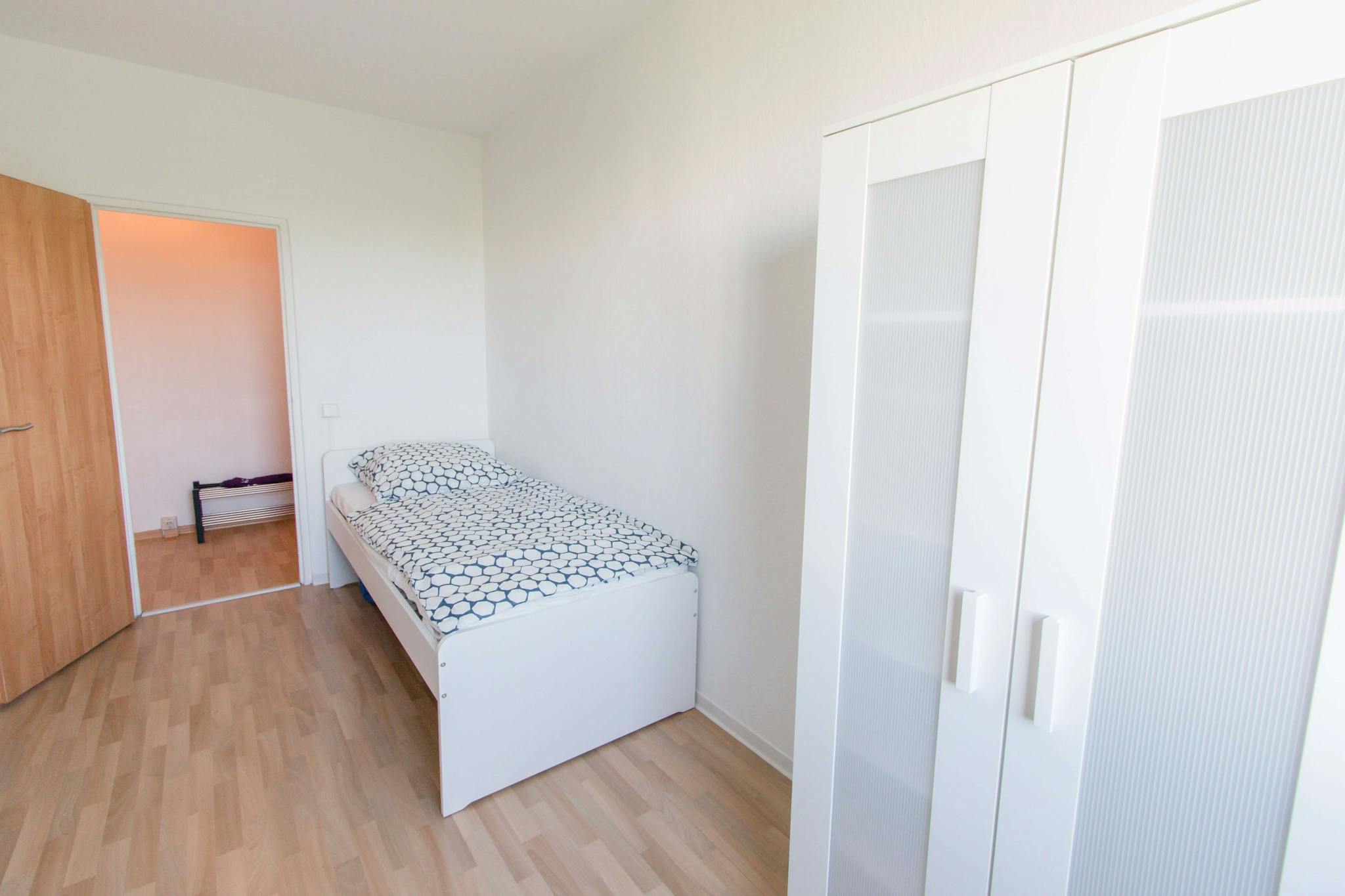 this is a fully furnished room in a shared flat. The room has a comfortable bed, a desk with chair and a wardrobe for your clothes. Also the common areas are fully equipped with washing machine, cooking equipment and all you need for your daily living.