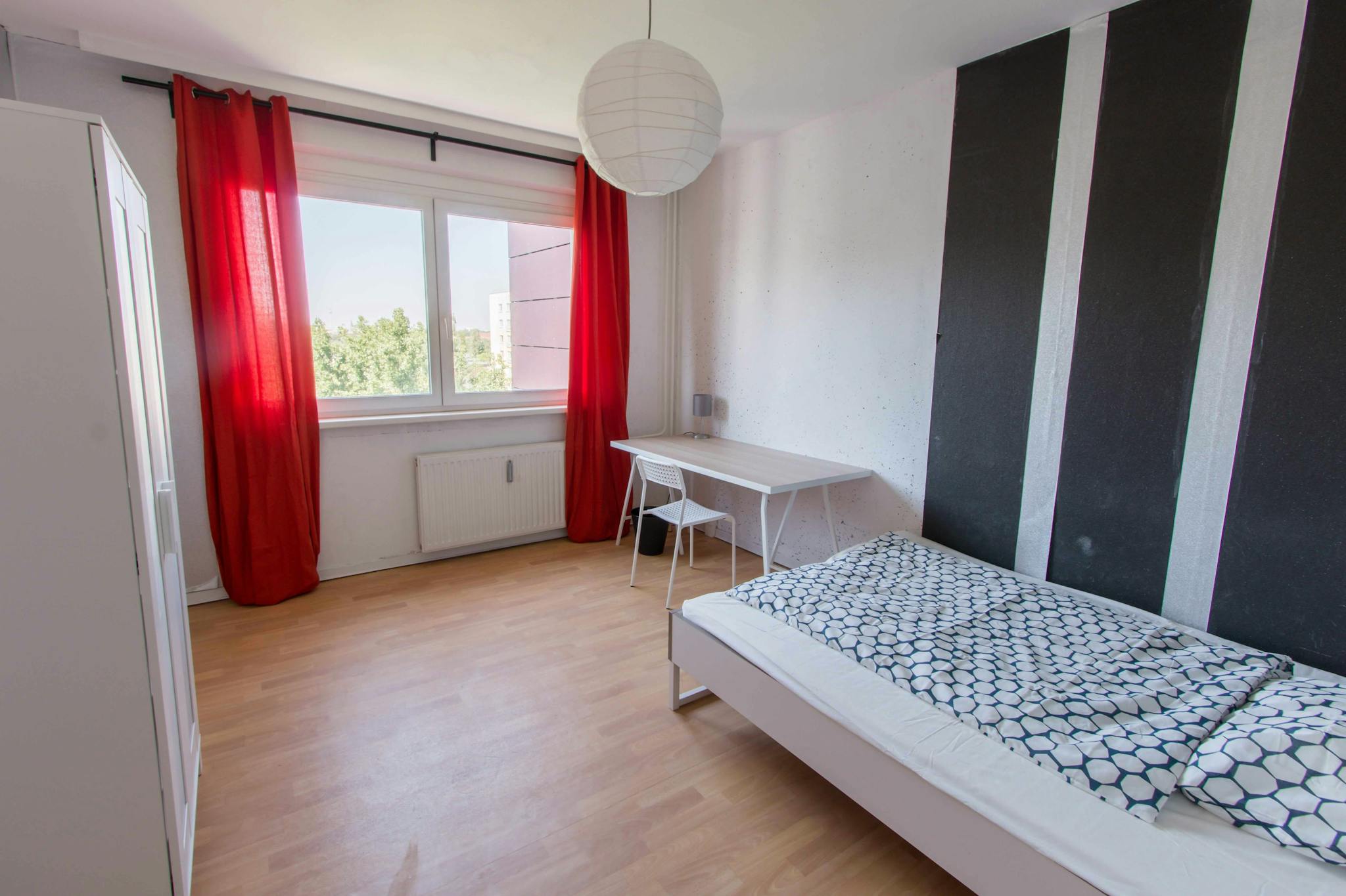this is a fully furnished room in a shared flat. The room has a comfortable bed, a desk with chair and a wardrobe for your clothes. Also the common areas are fully equipped with washing machine, cooking equipment and all you need for your daily living.