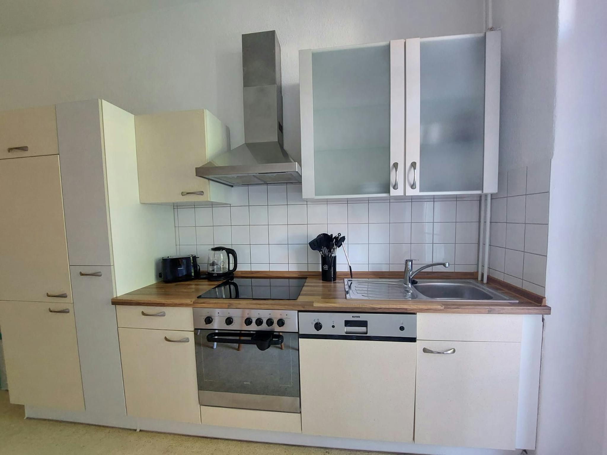 Eine voll ausgestattete Küche mit Herd, Kühl-/Gefrierschrank, Waschmaschine und Backofen und einer separaten Sitzecke mit direkten Balkonzugang machen die Wohnung direkt startbereit. Außerdem bietet es ein schönes Badezimmer mit Badewanne. Die Wohnung liegt zentral, umgeben von Cafés, Restaurants, Geschäften und Bioläden. Perfekt für Paare oder Geschäftsleute, die in Berlin tätig sind.