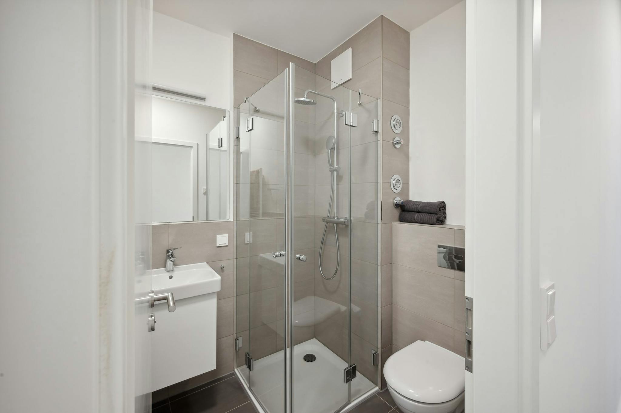 You will be the first to move into our newly constructed and renovated apartments with complete noise isolation and floor heating. Each flat has a fully equipped modern kitchen with everything from pans to a coffee machine, dishwasher, and oven. To catch those sun rays, ground-floor apartments have terrace access facing the courtyard, while flats on other floors include balconies. All apartments have spacious bathrooms that you will be sharing with your flatmates.