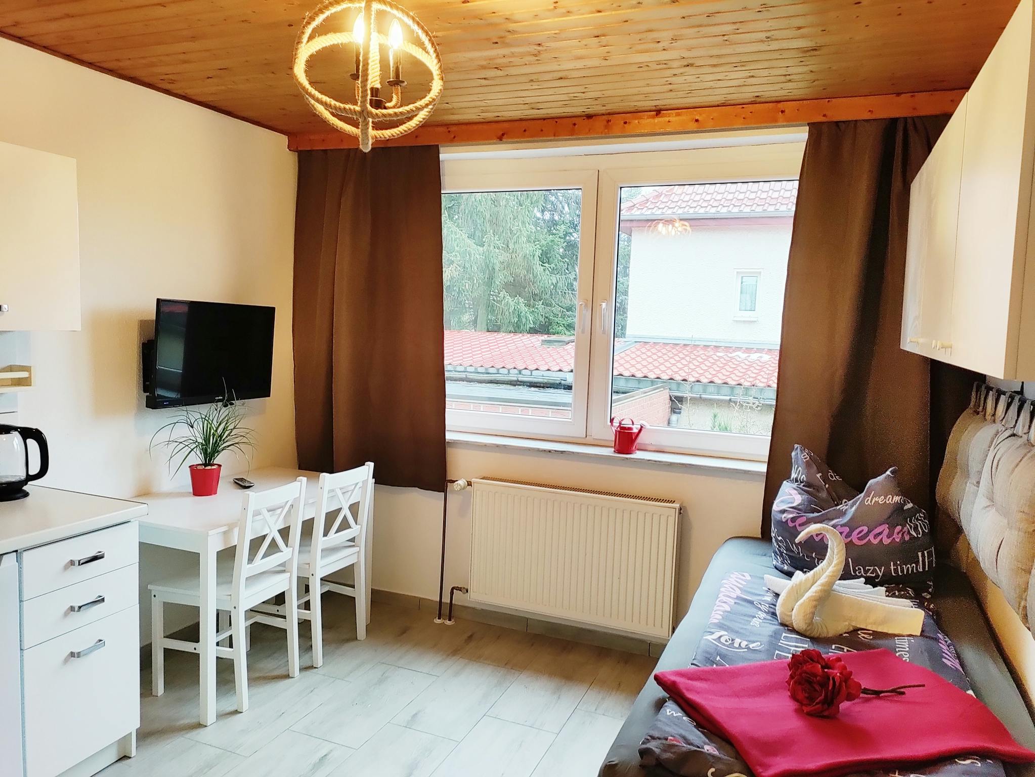 Non-SmokingNot allowedIch vermiete ein Studio ( eigenes Zimmer mit integrierter Küchenzeile und eigenem Privatbad mit Minibadewanne) mit W-lan mit extra Gemeinschaftszimmer. Es ist ein Erstbezug nach umfassender Sanierung.
