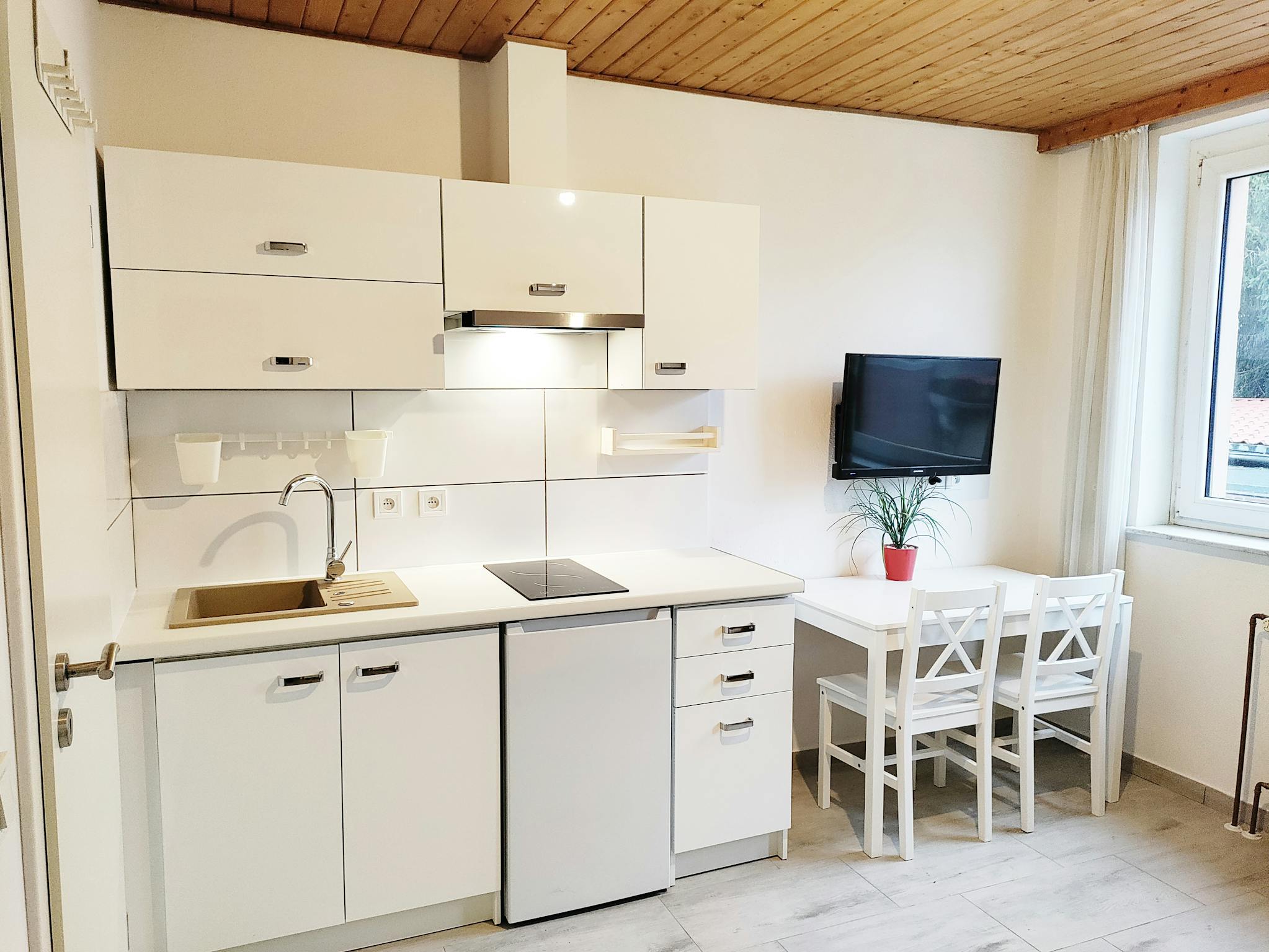 I rent a studio (own room with integrated kitchenette and own private bathroom with mini bath) with wifi with extra common room. The house is still under construction but only weekdays to max 5pm. The studio is already finished. It is a first occupancy after extensive renovation.