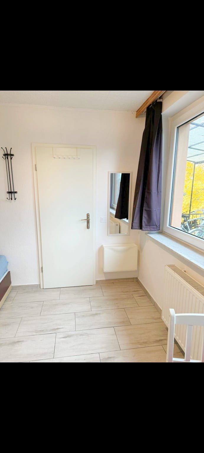 Non-SmokingNot allowedIch vermiete ein Studio ( eigenes Zimmer mit integrierter Küchenzeile und eigenem Privatbad mit Minibadewanne) mit W-lan mit extra Gemeinschaftszimmer. Es ist ein Erstbezug nach umfassender Sanierung. Im Gemeinschaftsraum befindet sich die Waschmaschine und eine Holzsitzecke.