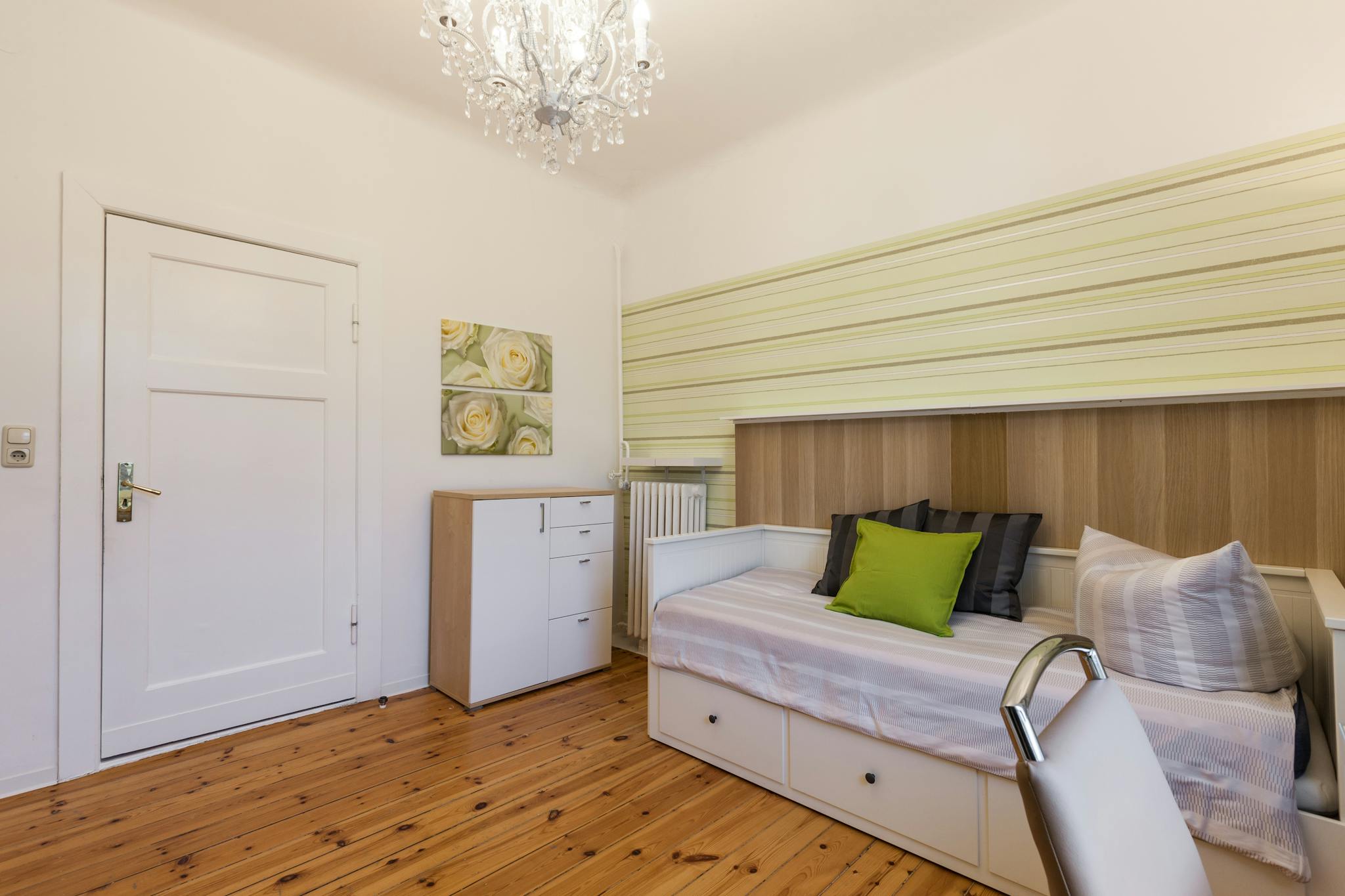 Non-SmokingNot allowedThe beautiful private room (18 suare meters) is located in a villa nearby the airport BER. To the bus station you only need a five-minutes-walk. Nearby there are supermarkets, a bakery and a shopping center which includes also a drugstore, a bank, a supermarket and other charming stores.