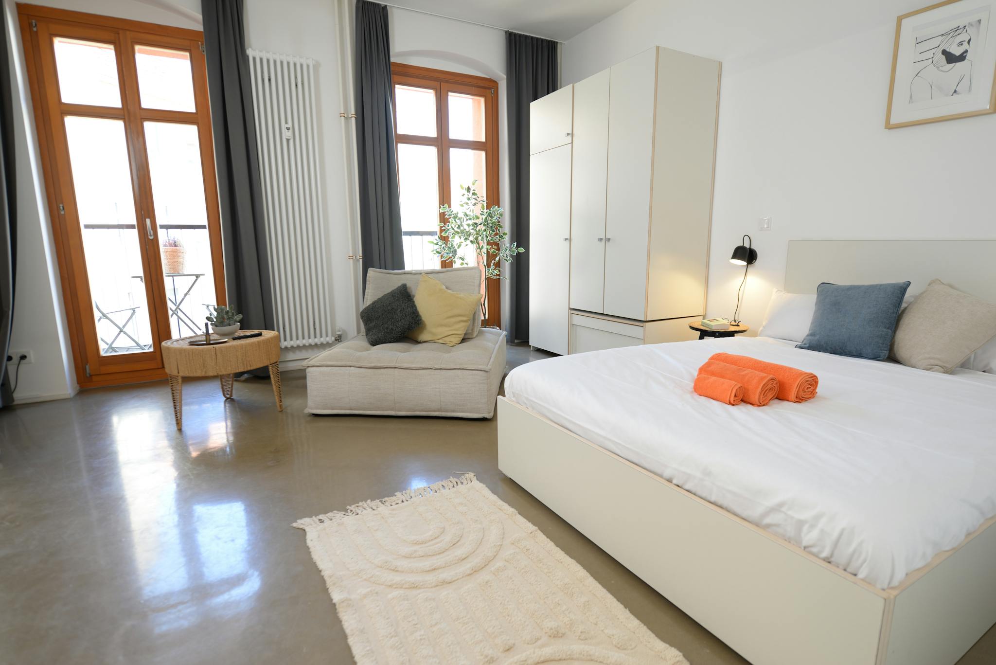 • Queen-Size-Bett mit Bettwäsche & viel Stauraum