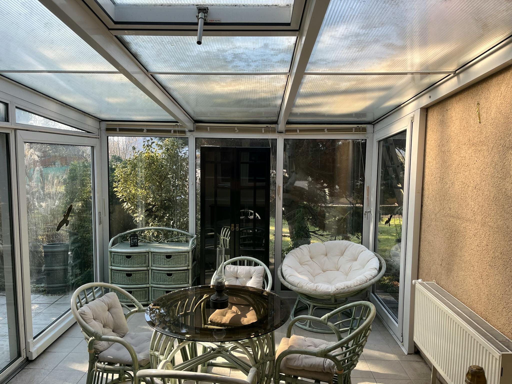 The apartment is fully furnished and includes a fully equipped kitchen with a dishwasher, a spacious communalliving area , and a winter garden.