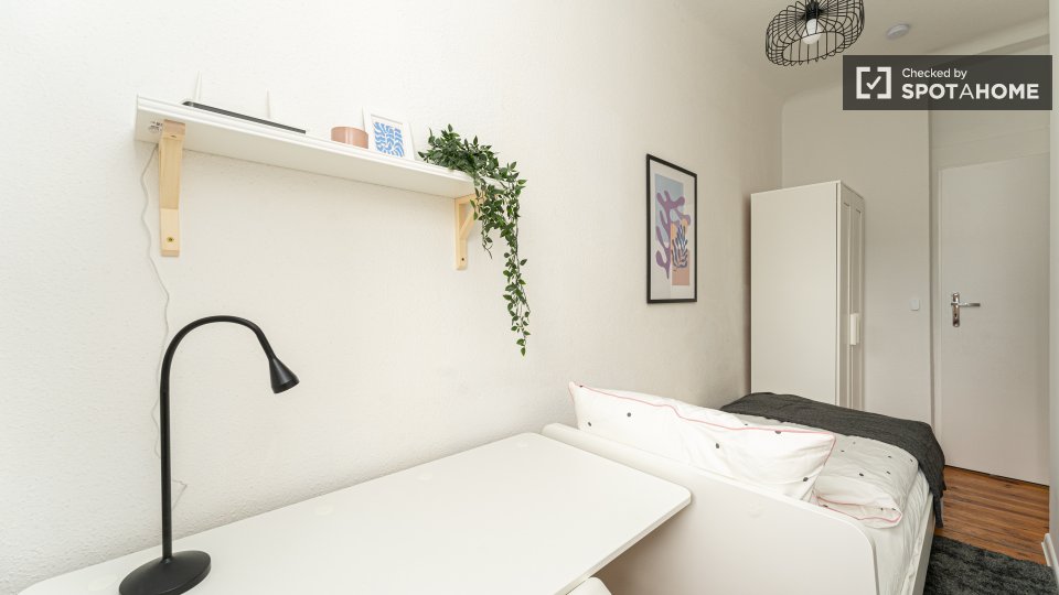 Pets not allowedNot allowedWelcome to this fully furnished room in a shared 4-bedroom apartment in Berlin. This property features an equipped kitchen with basic utilities, an oven, and a washing machine available for your exclusive use. Residents will enjoy the spacious balcony for outdoor relaxation. It is an exterior apartment, ensuring a bright and lively living experience. All bills (electricity, water, gas, and WiFi) are included for your convenience. Professionally verified by Spotahome.