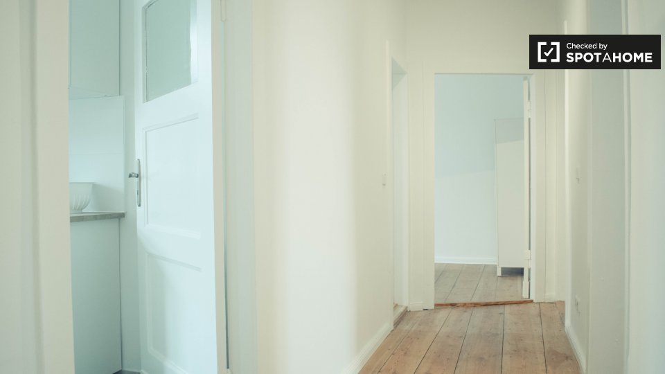 This is a beautiful 4th floor, 5-bedroom apartment on Märkisches Ufer, Berlin. Enjoy sleek, minimalist style with beautiful wooden flooring and stunning river views.