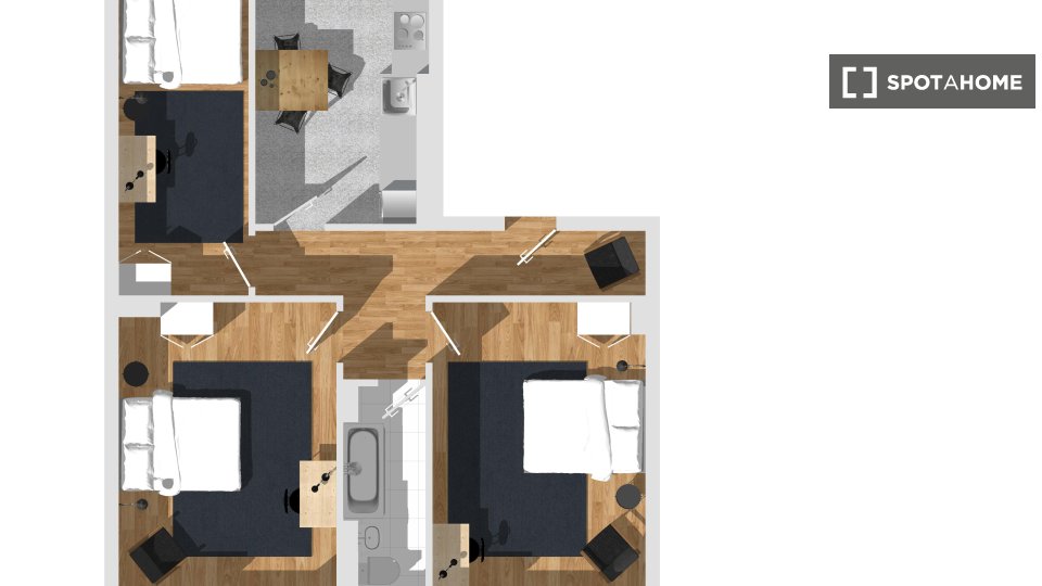 The apartment is designed in a modern style with spacious rooms and a great kitchen. All costs are included in the rent, including bills, internet, bi-weekly cleaning, and more!