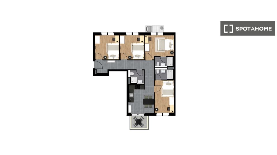 You will be the first to move into our newly constructed and renovated apartments with complete noise isolation and floor heating. Each flat has a fully equipped modern kitchen with everything from pans to a coffee machine, dishwasher, and oven. To catch those sun rays, ground-floor apartments have terrace access facing the courtyard, while flats on other floors include balconies. All apartments have spacious bathrooms that you will be sharing with your flatmates.