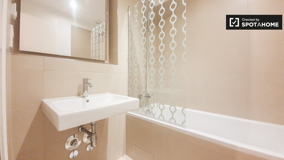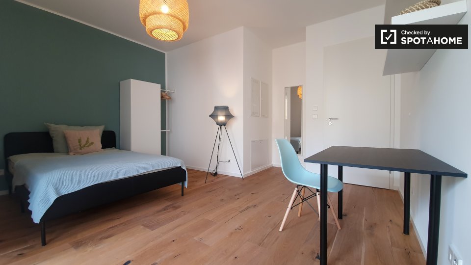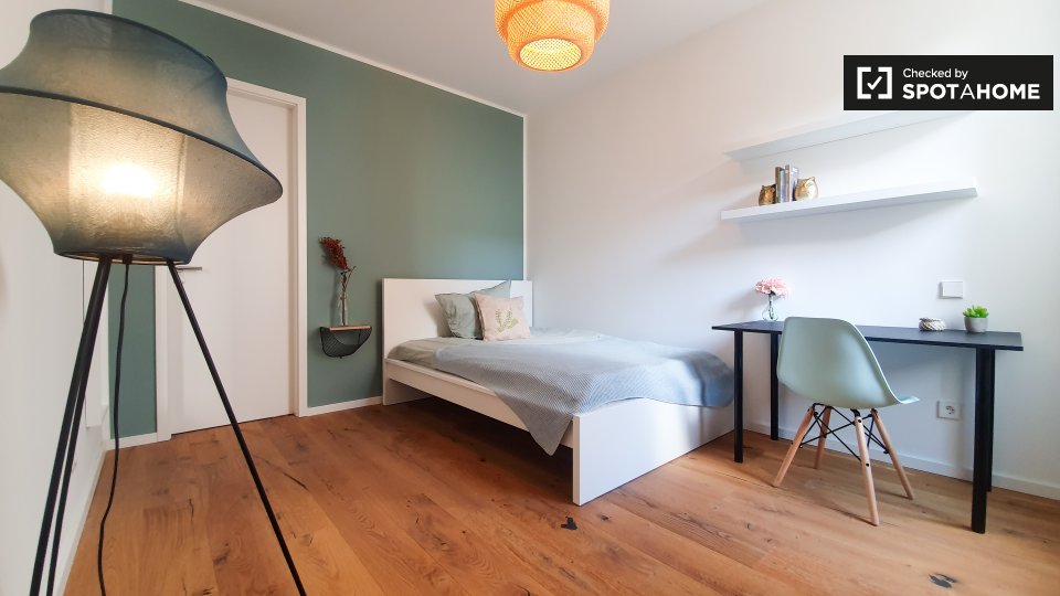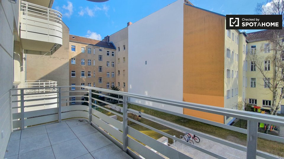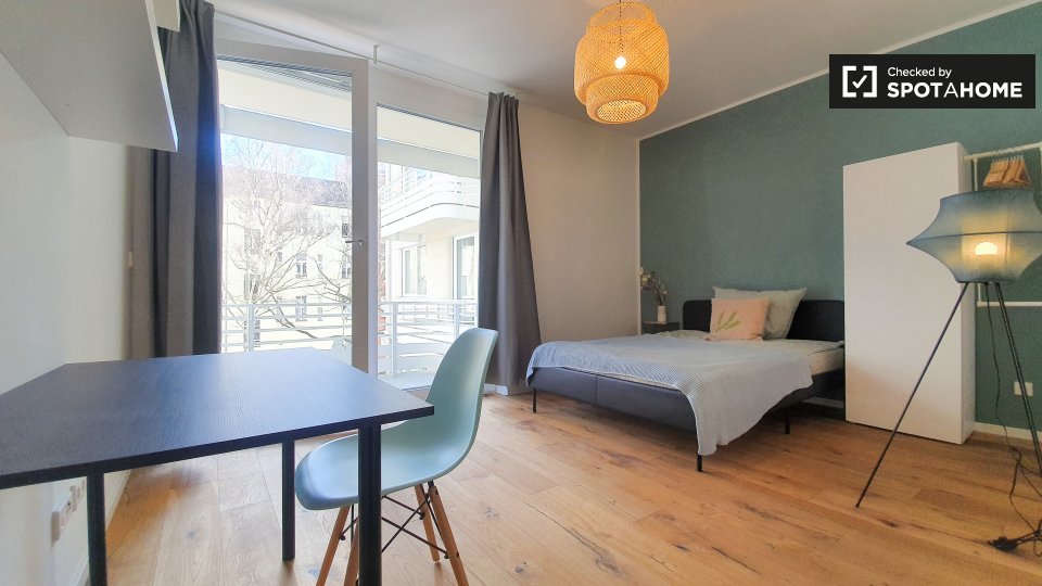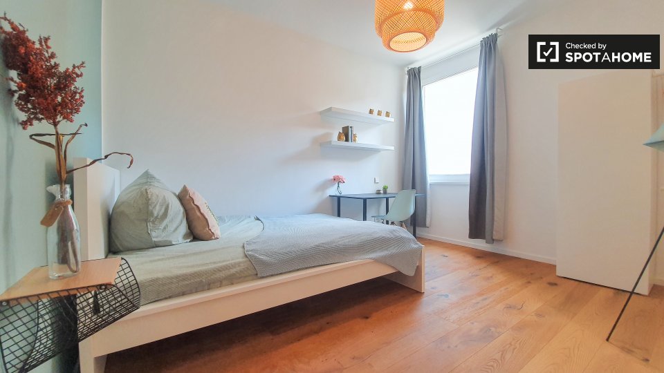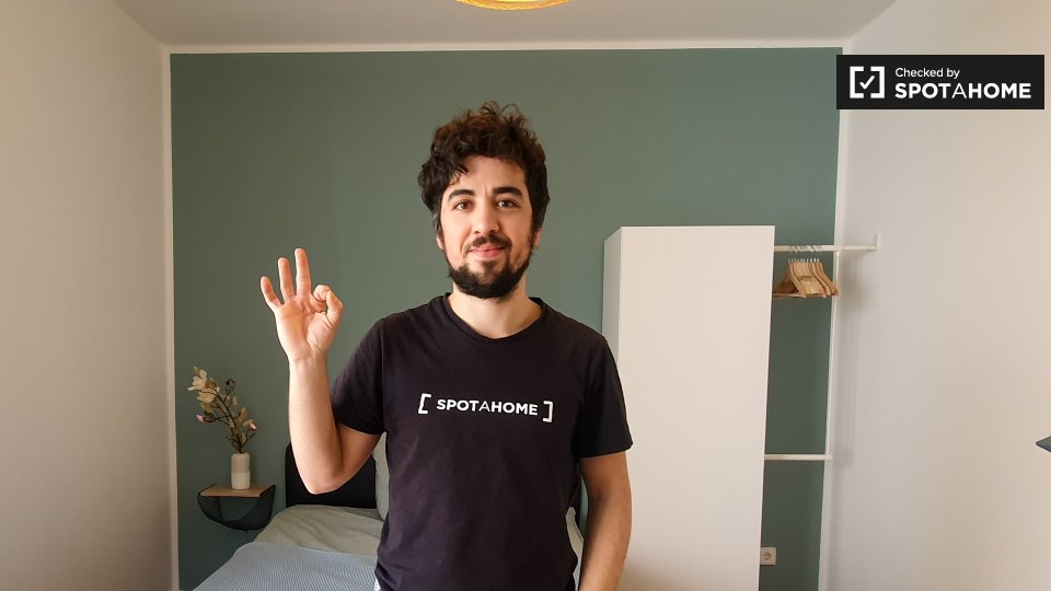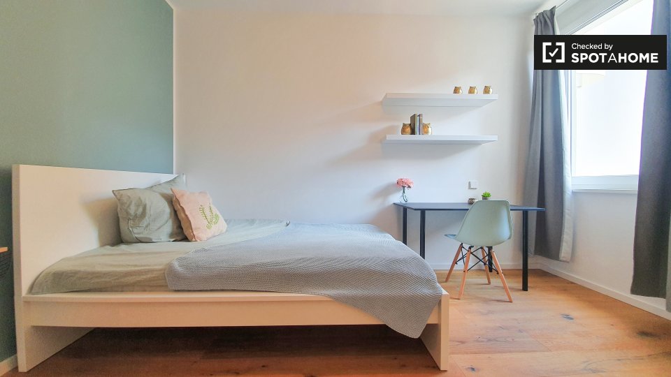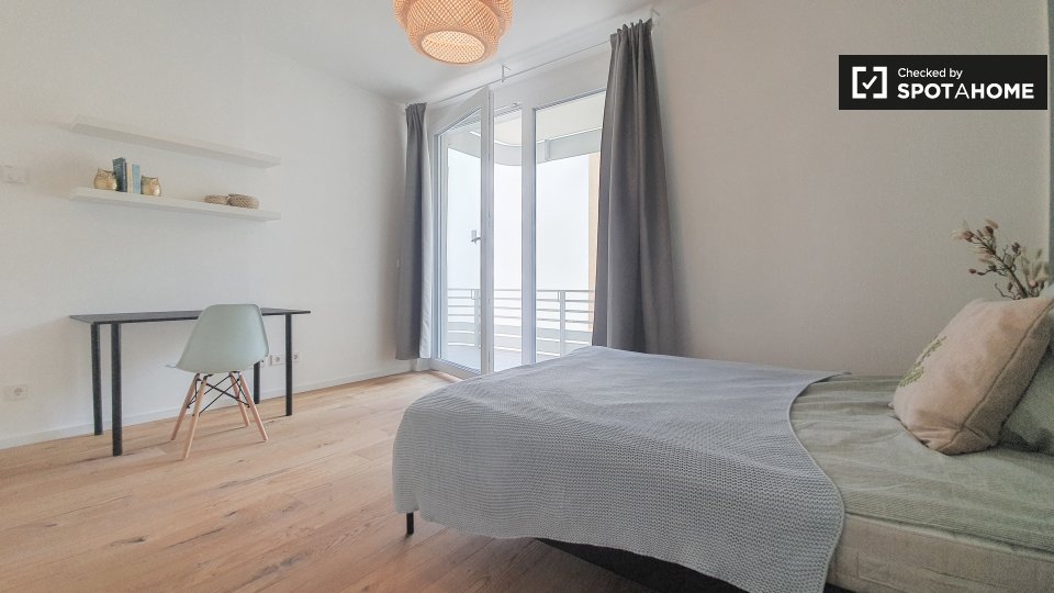 Pets not allowedNot allowedThis inviting room is part of a shared 2-bedroom apartment located in Berlin. The apartment is exterior, featuring a balcony that provides a warm and bright environment. It comes fully furnished, equipped with a kitchen that includes an oven and common laundry facilities with a washer and dryer. The property has underfloor heating and all bills, including electricity, water, gas, wi-fi, and periodic cleaning, are included. This apartment welcomes professionals and students but does not allow pets, smoking, or couples. Verified by Spotahome for your convenience.