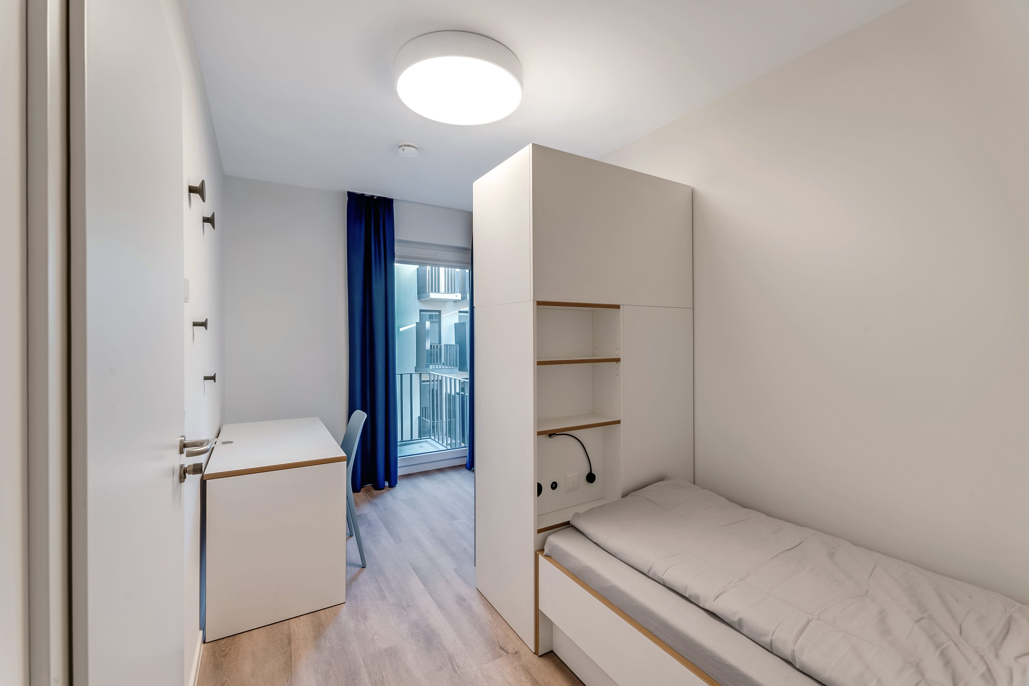 The shared rooms have a well-equipped communal kitchen with a large dining table. Of course, your room is lockable. Most rooms have balconies.