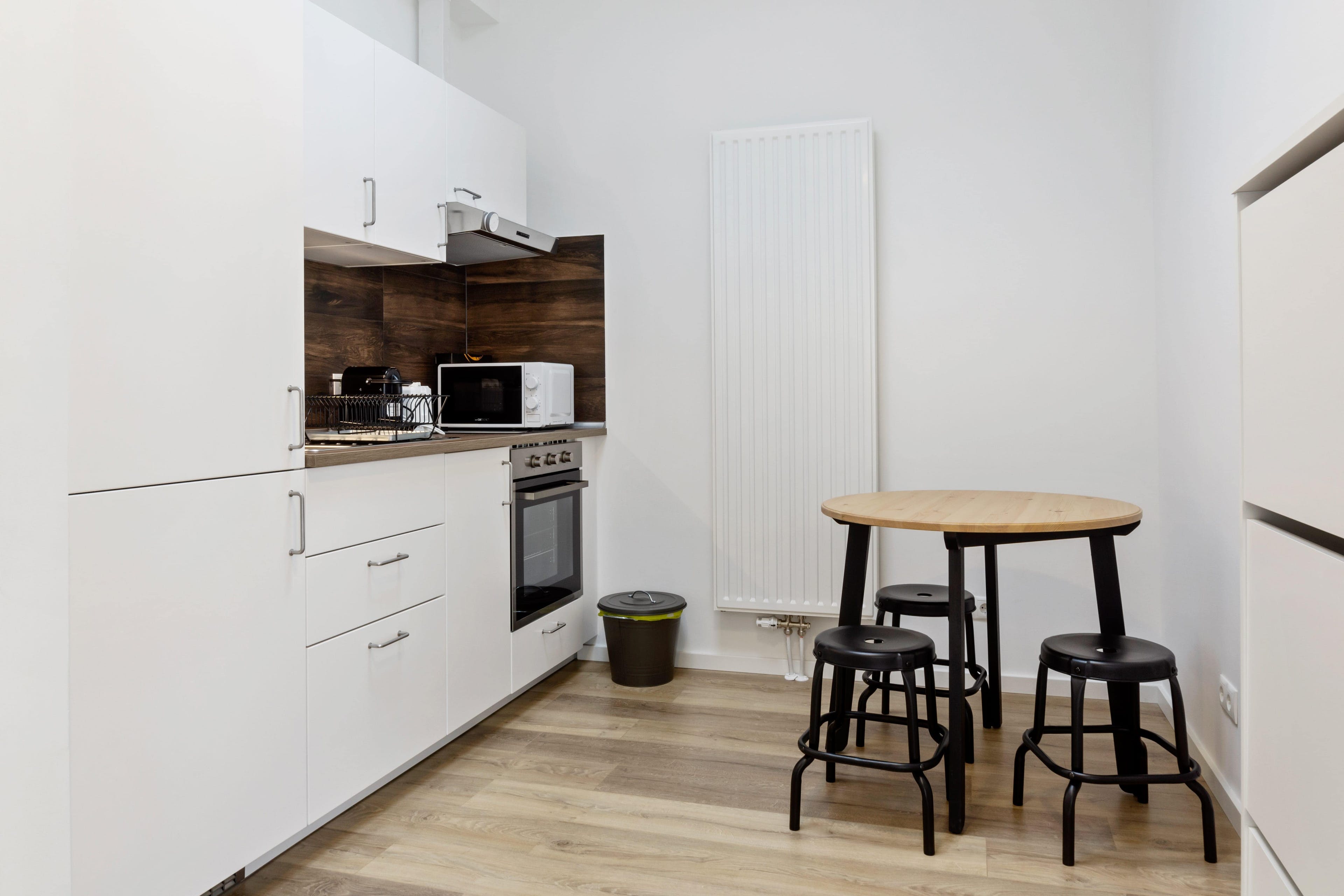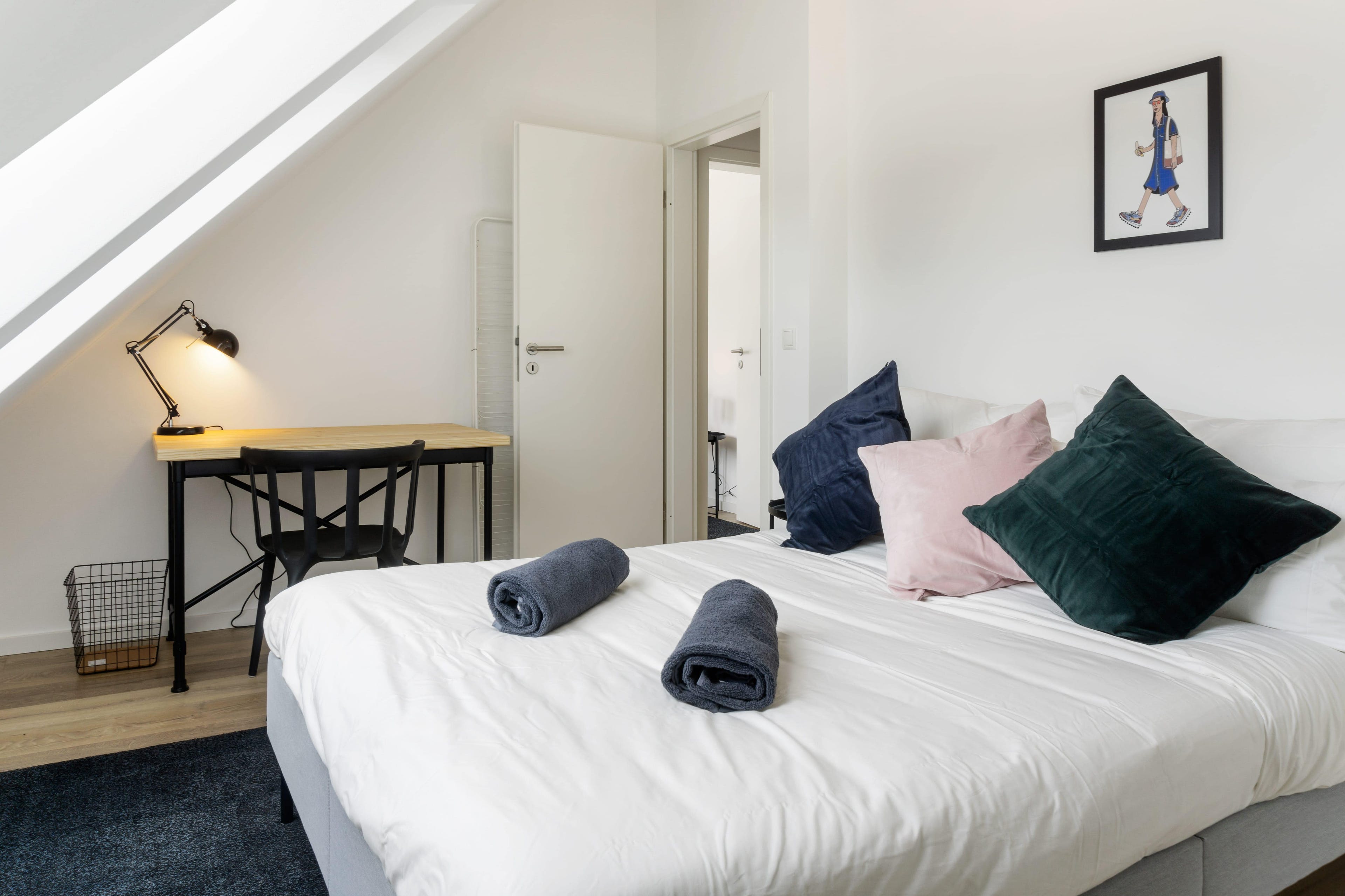 Our flats fulfil all your daily living requirements. Every flat comes readily equipped with a kitchen, including refrigerator, cooking equipment and dishes. Flats also include a washing machine and Wi-Fi Internet. Each room is fully furnished and offers a comfortable bed with fresh linen and a workspace. The area provides you with several shopping opportunities and excellent connections to public transport.