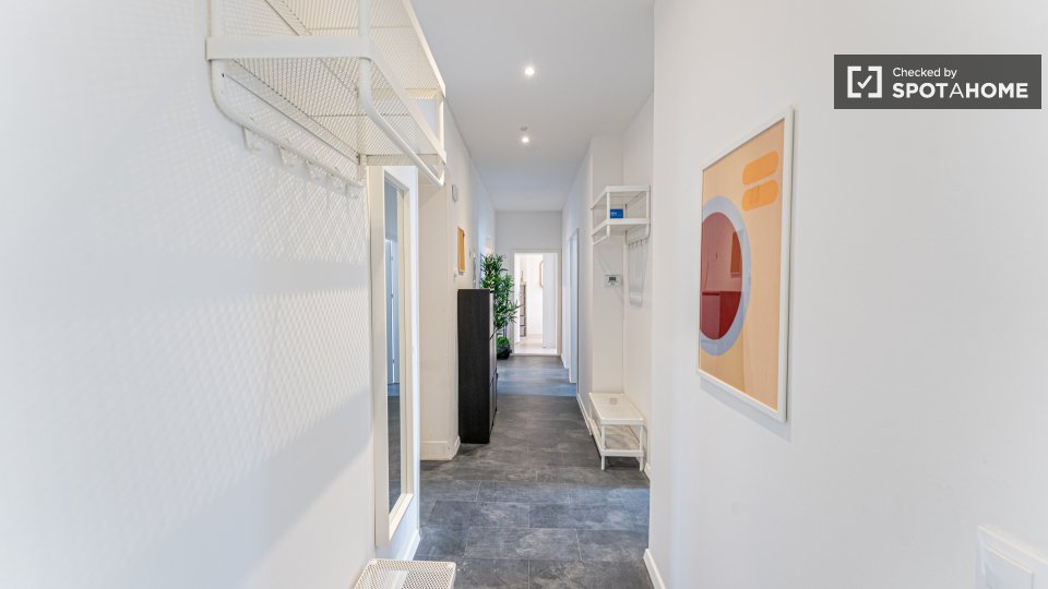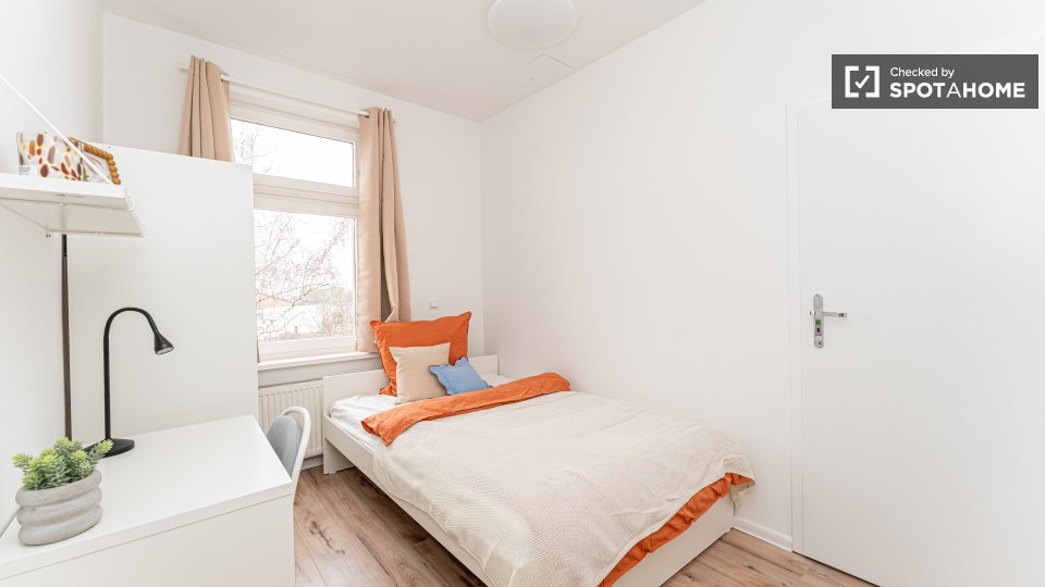 This spacious room for rent in an 8-bedroom shared apartment in Berlin is perfect for those seeking comfortable and modern living. The property is fully furnished and features a functional equipped kitchen, a private washing machine, an oven for culinary enthusiasts, and an enjoyable balcony to relax. This apartment has been personally checked by Spotahome for accurate representation. Located in Berlin, the property is surrounded by various amenities. Dining options such as Roshan Imbiss restaurant and Bring'N'Sushi Reinickendorf pizzeria are nearby. Additionally, the Edeka market is within walking distance, offering convenience for your everyday shopping needs. Indulge in the urban lifestyle of Berlin with this great rental opportunity.