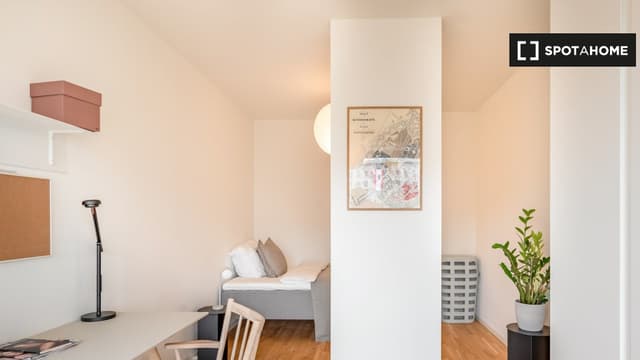The flat is a ground floor apartment with 5 spacious and brightly lid bedrooms. It features a private patio, front and back courtyard as well as a beautiful shared rooftop terrace with a breathtaking view of Berlin.