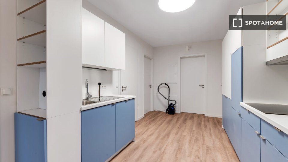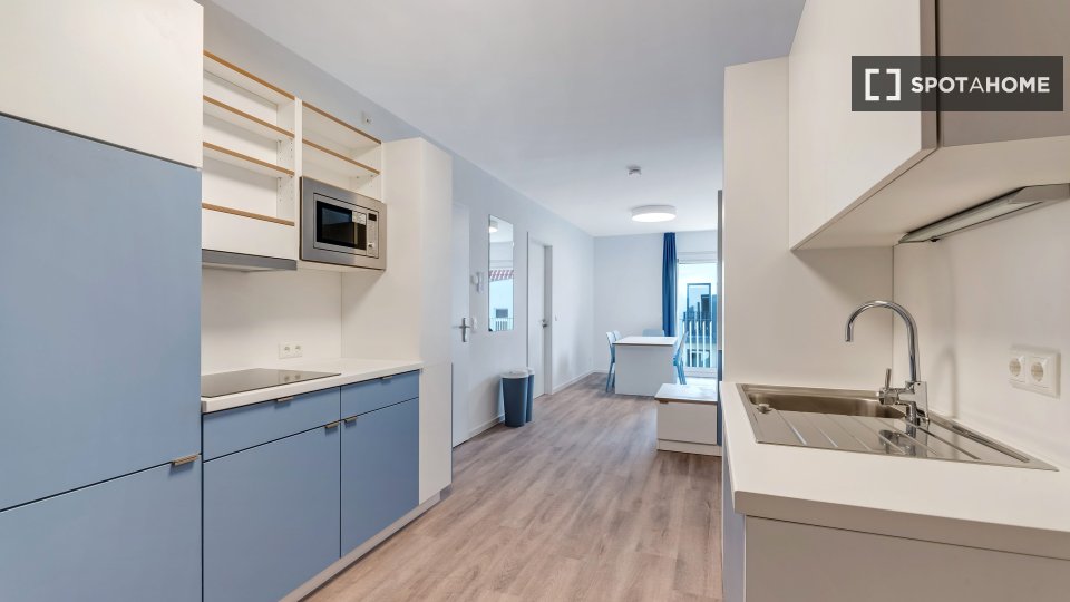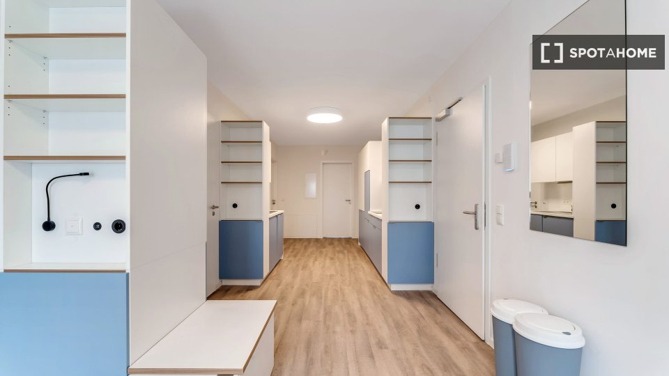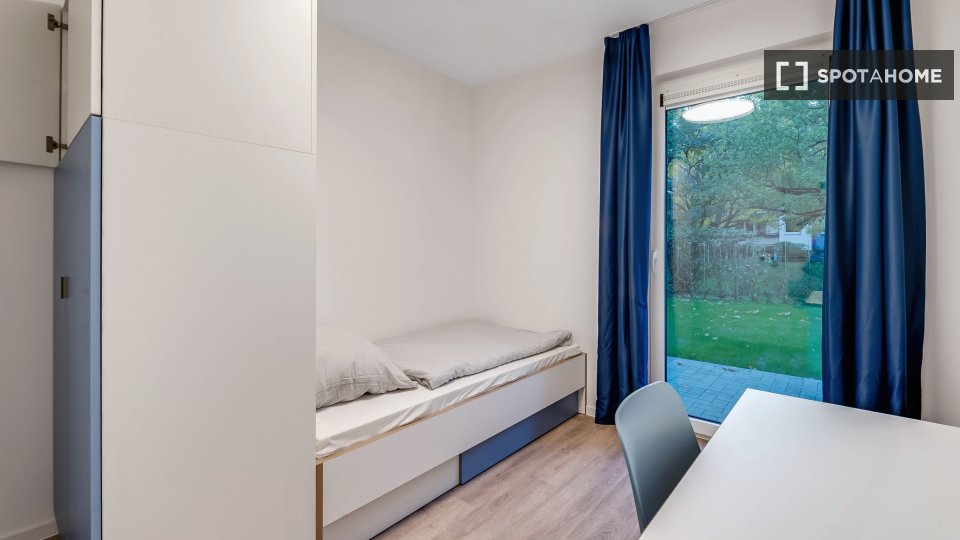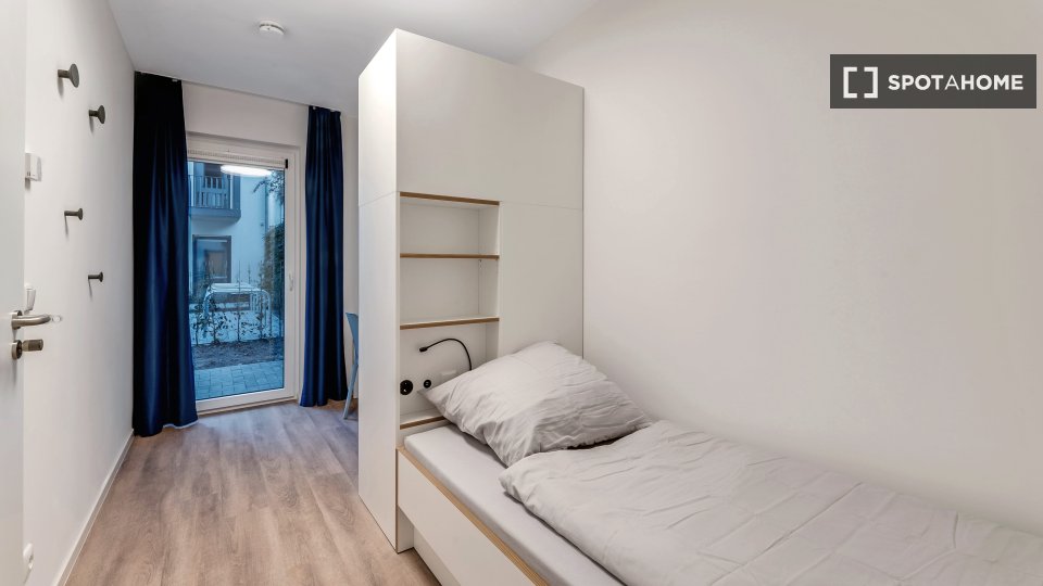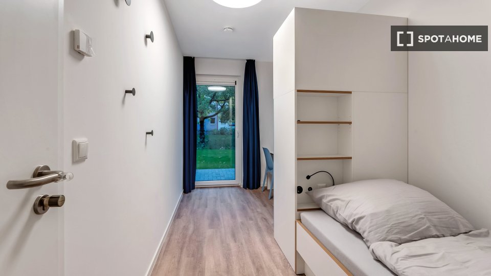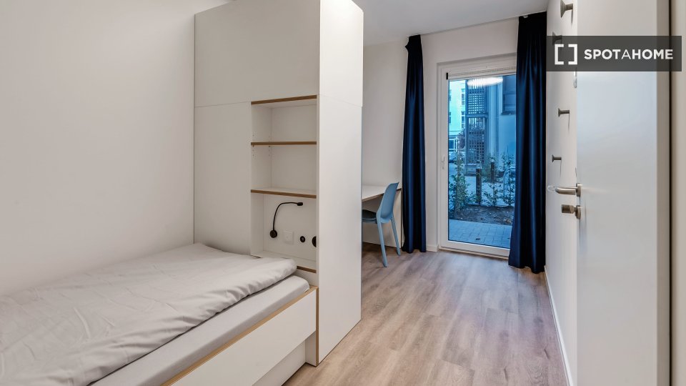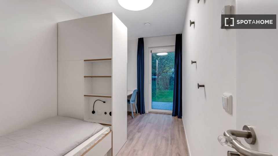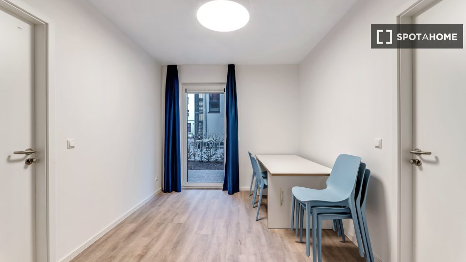 The shared rooms have a well-equipped communal kitchen with a large dining table. Of course, your room is lockable. Your room has a terrace.