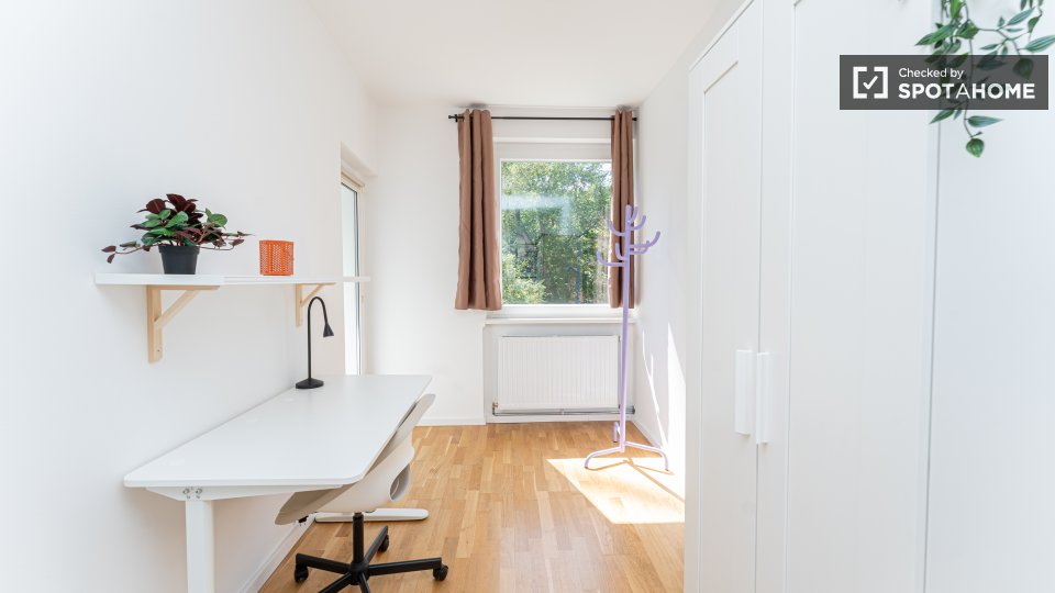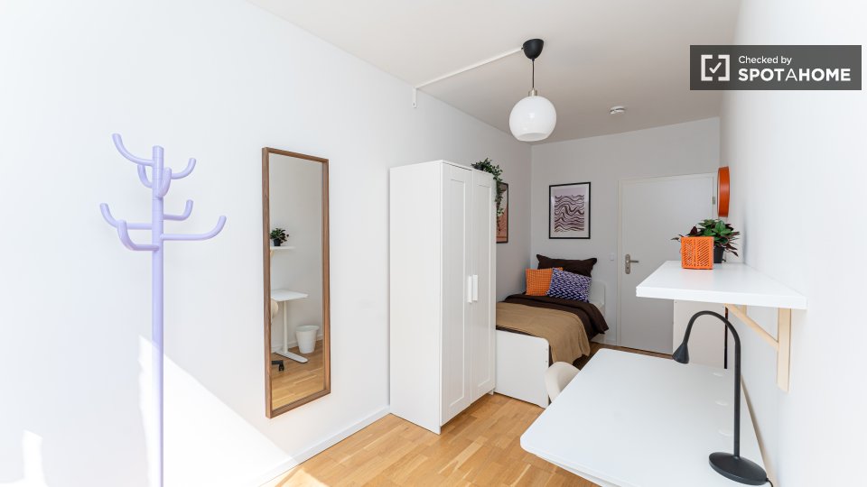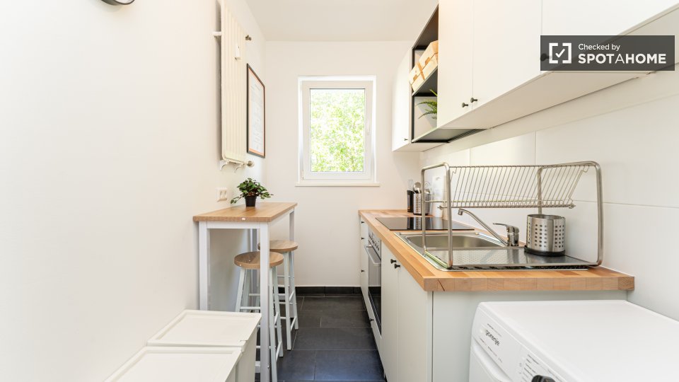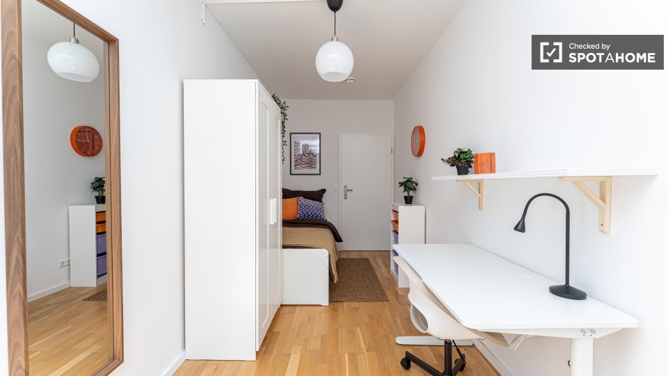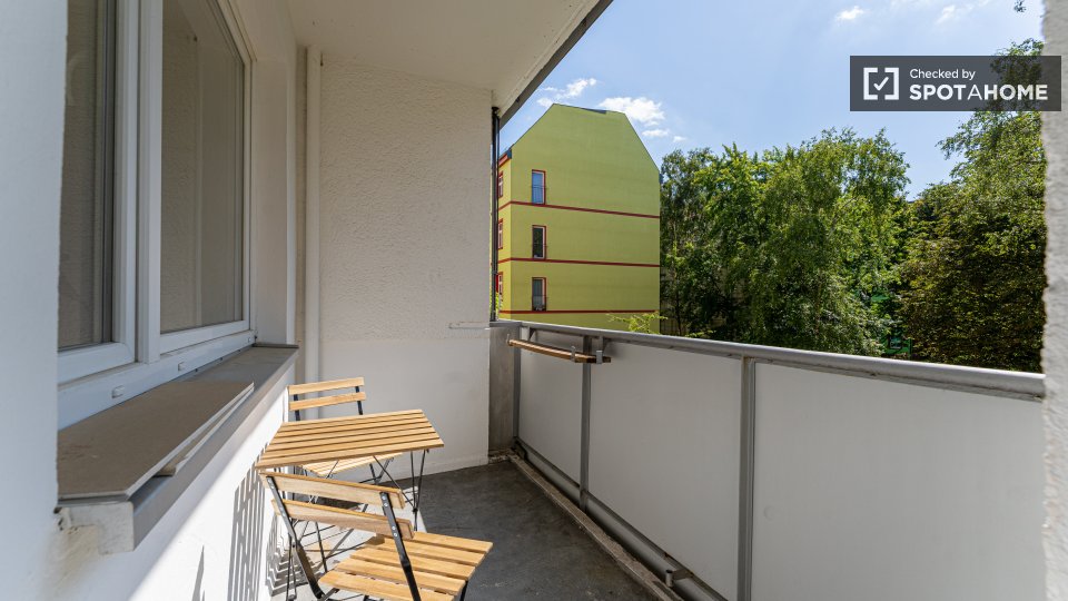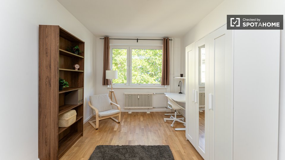 Pets not allowedNot allowedThis spacious room is available in a shared 4-bedroom apartment in Berlin. The property is exterior-facing with a balcony, well-furnished, and equipped with a private washing machine and oven in its perfectly equipped kitchen. Spotahome has personally verified this property, ensuring everything is ready for you to move in. Bills for water, electricity, gas, and WiFi are included in the rent. This apartment offers comfortable and modern living for professionals and students. Situated in Berlin, you'll experience a vibrant urban lifestyle. Nearby, you'll find Beuth Hochschule Für Technik Berlin and the Netto Marken-Discount market. The Summer in the City tourist attraction is located within reach, along with numerous dining venues such as Pizzeria Monella, Cafe Largo, and Schäfer-Café Bar Restaurant. Explore Berlin's offerings from this ideally located home.