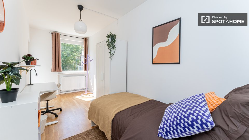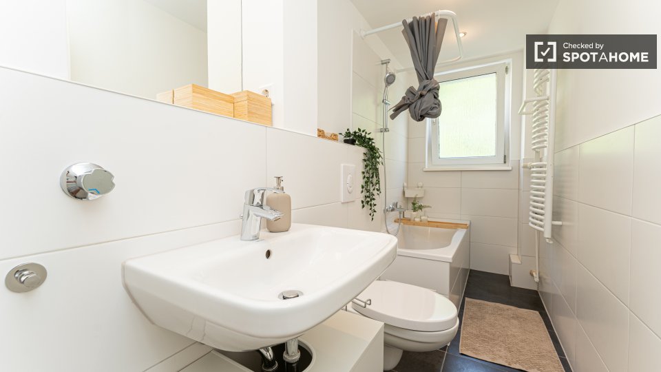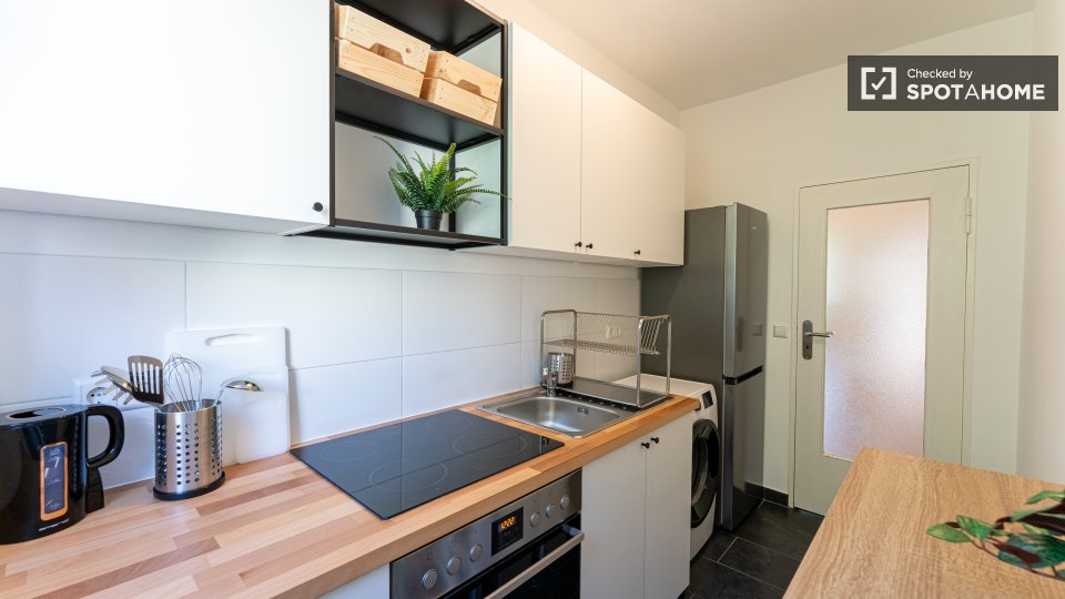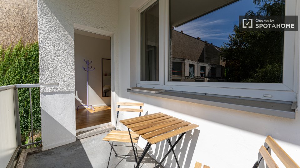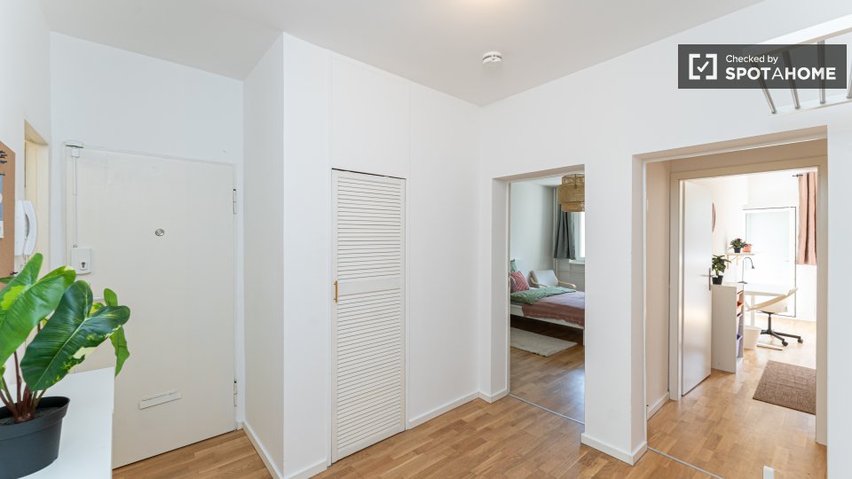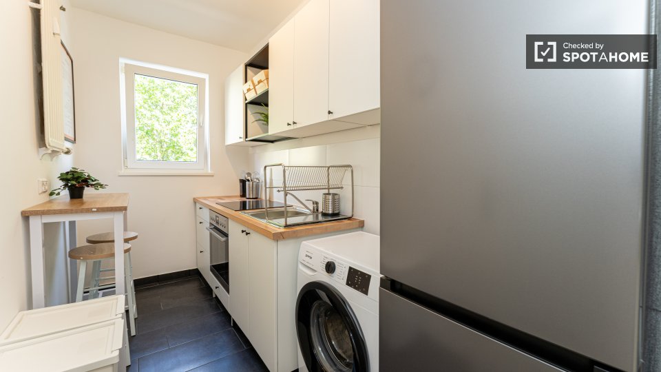 Pets not allowedNot allowedThis spacious room is available in a shared 4-bedroom apartment in Berlin. The property is exterior-facing with a balcony, well-furnished, and equipped with a private washing machine and oven in its perfectly equipped kitchen. Spotahome has personally verified this property, ensuring everything is ready for you to move in. Bills for water, electricity, gas, and WiFi are included in the rent. This apartment offers comfortable and modern living for professionals and students. Situated in Berlin, you'll experience a vibrant urban lifestyle. Nearby, you'll find Beuth Hochschule Für Technik Berlin and the Netto Marken-Discount market. The Summer in the City tourist attraction is located within reach, along with numerous dining venues such as Pizzeria Monella, Cafe Largo, and Schäfer-Café Bar Restaurant. Explore Berlin's offerings from this ideally located home.