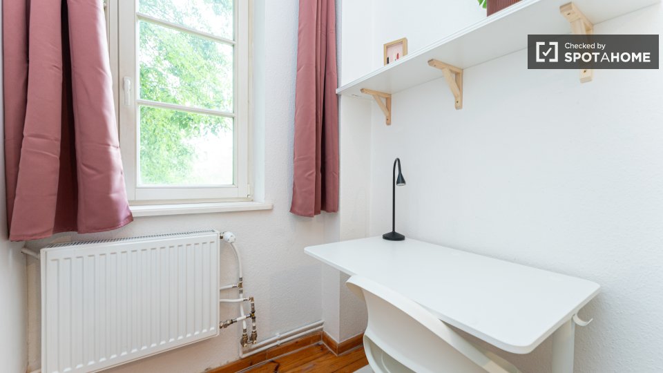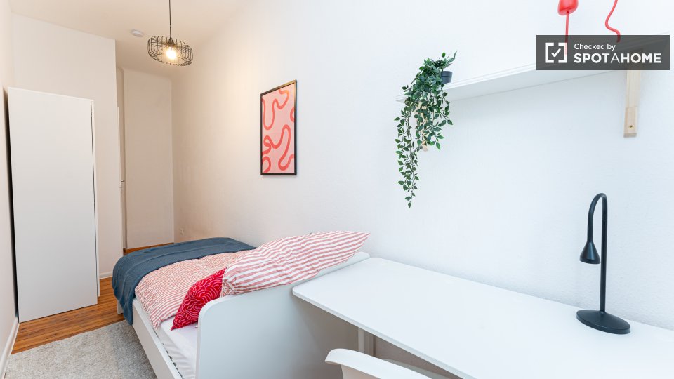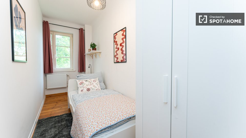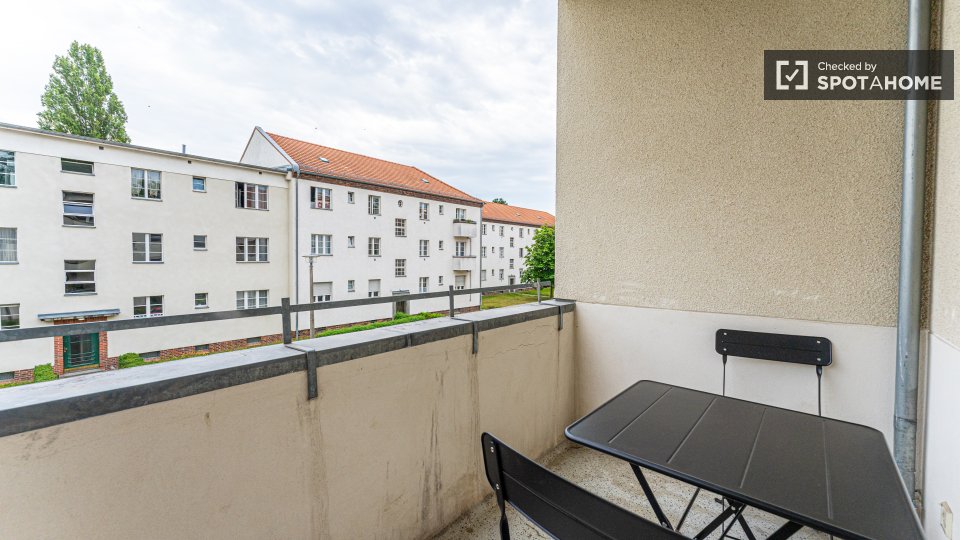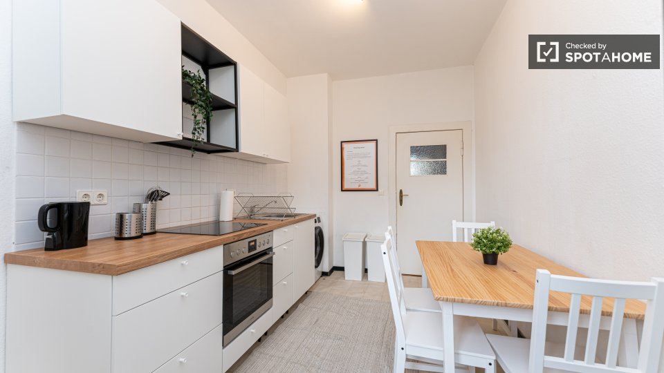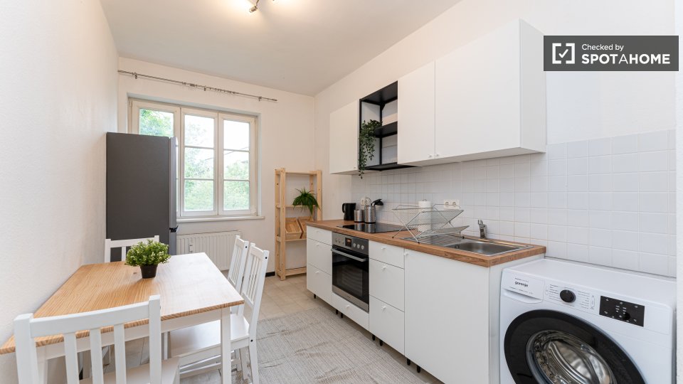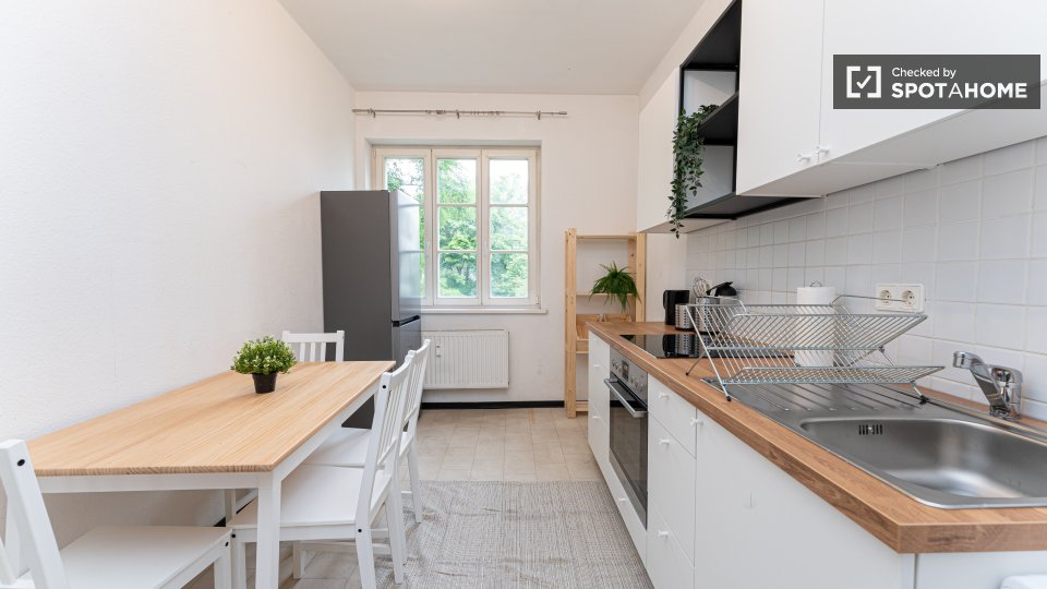 Pets not allowedNot allowedWelcome to this fully furnished room in a shared 4-bedroom apartment in Berlin. This property features an equipped kitchen with basic utilities, an oven, and a washing machine available for your exclusive use. Residents will enjoy the spacious balcony for outdoor relaxation. It is an exterior apartment, ensuring a bright and lively living experience. All bills (electricity, water, gas, and WiFi) are included for your convenience. Professionally verified by Spotahome.