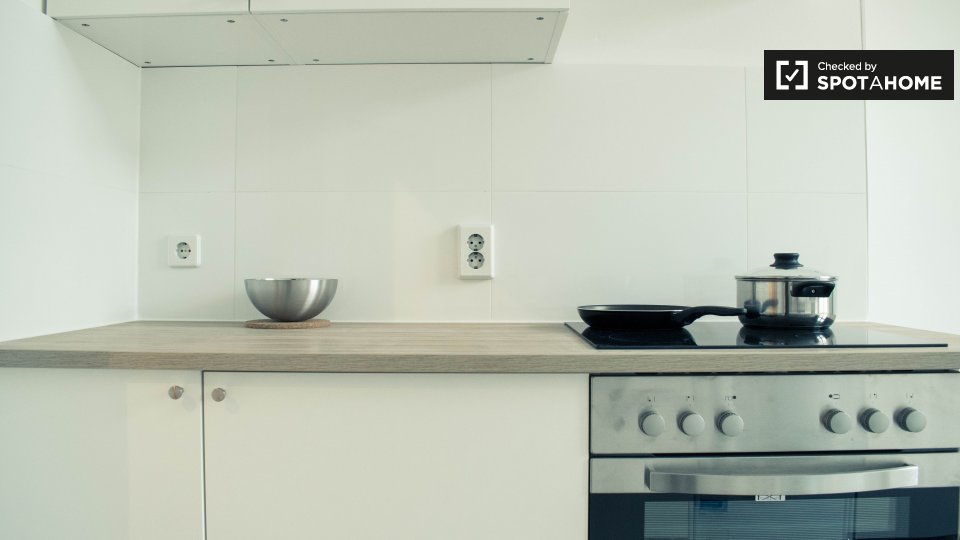 - The entire apartment is sleek, clean and modern.