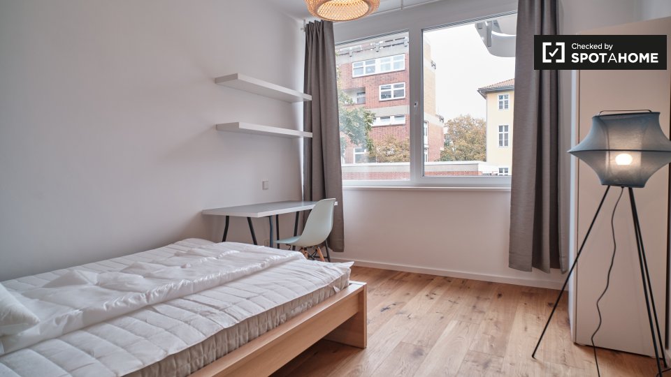 Pets not allowedNot allowedThis spacious room in a shared 3-bedroom apartment located in Berlin is now available for rent. The apartment is fully furnished and features amenities such as an equipped kitchen, underfloor heating, and a balcony for your comfort. All bills are included, and couples are not permitted. The property has been thoroughly checked by Spotahome for added peace of mind.