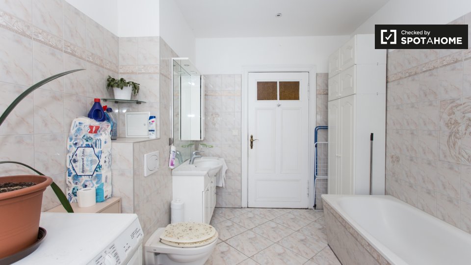 Pets not allowedNot allowedSpotahome presents a great rental option in Berlin: a furnished room in a shared 4-bedroom apartment. The room includes a private washing machine, dryer, and dishwasher, and an equipped kitchen is available for use. The property does not include air conditioning but features central heating. Smoking is allowed. Couples or families are not suitable for this accommodation. It is verified by Spotahome, ensuring quality and trust.