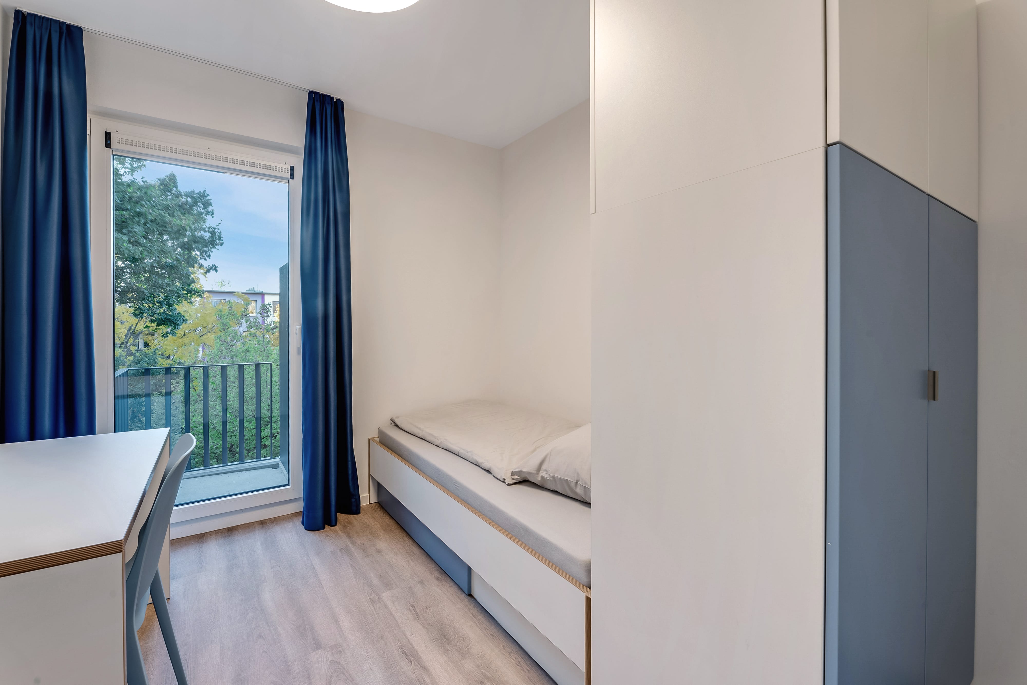 The shared rooms have a well-equipped communal kitchen with a large dining table. Of course, your room is lockable. Most rooms have balconies.