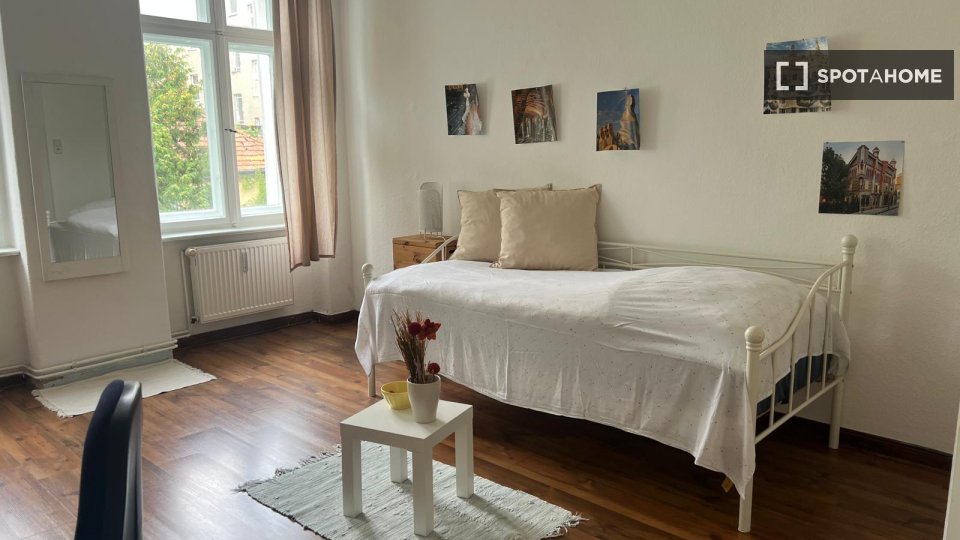 Pets not allowedNot allowedDiscover this fantastic room available for rent in a shared 3-bedroom apartment located in Berlin. The property is furnished and features a balcony or terrace, offering a comfortable and inviting space for only females. The kitchen is equipped, ensuring all necessities are catered for. Additionally, WiFi is included, and the washing machine is available for convenience. Spotahome has checked this property, assuring its quality and compliance.
